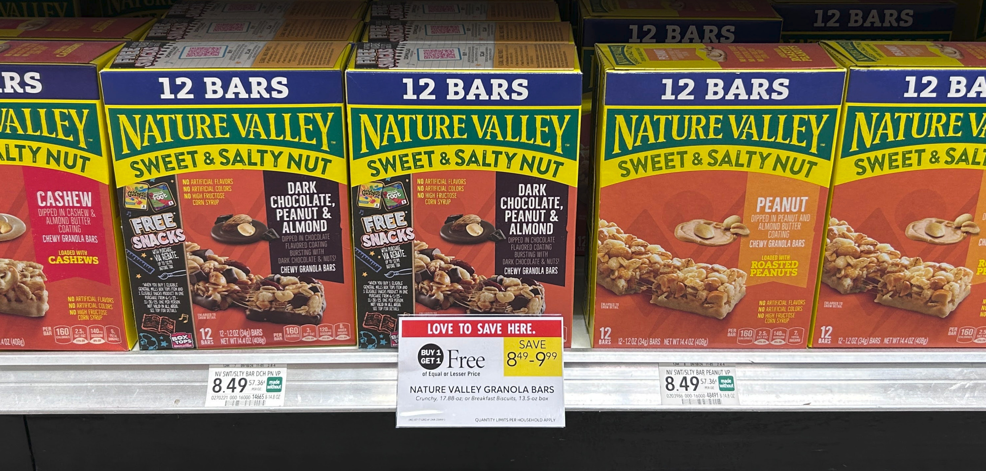 –$1/1 Nature Valley Granola Bars, Protein Bars, Biscuits, Wafers, Soft-Baked Squares, Soft-Baked Muffins, Crunchy Dipped Granola Squares, Savory Nut Crunch, Protein Smoothie, Soft-Baked Breakfast Bars OR Lunch Box (Publix Digital Coupon)