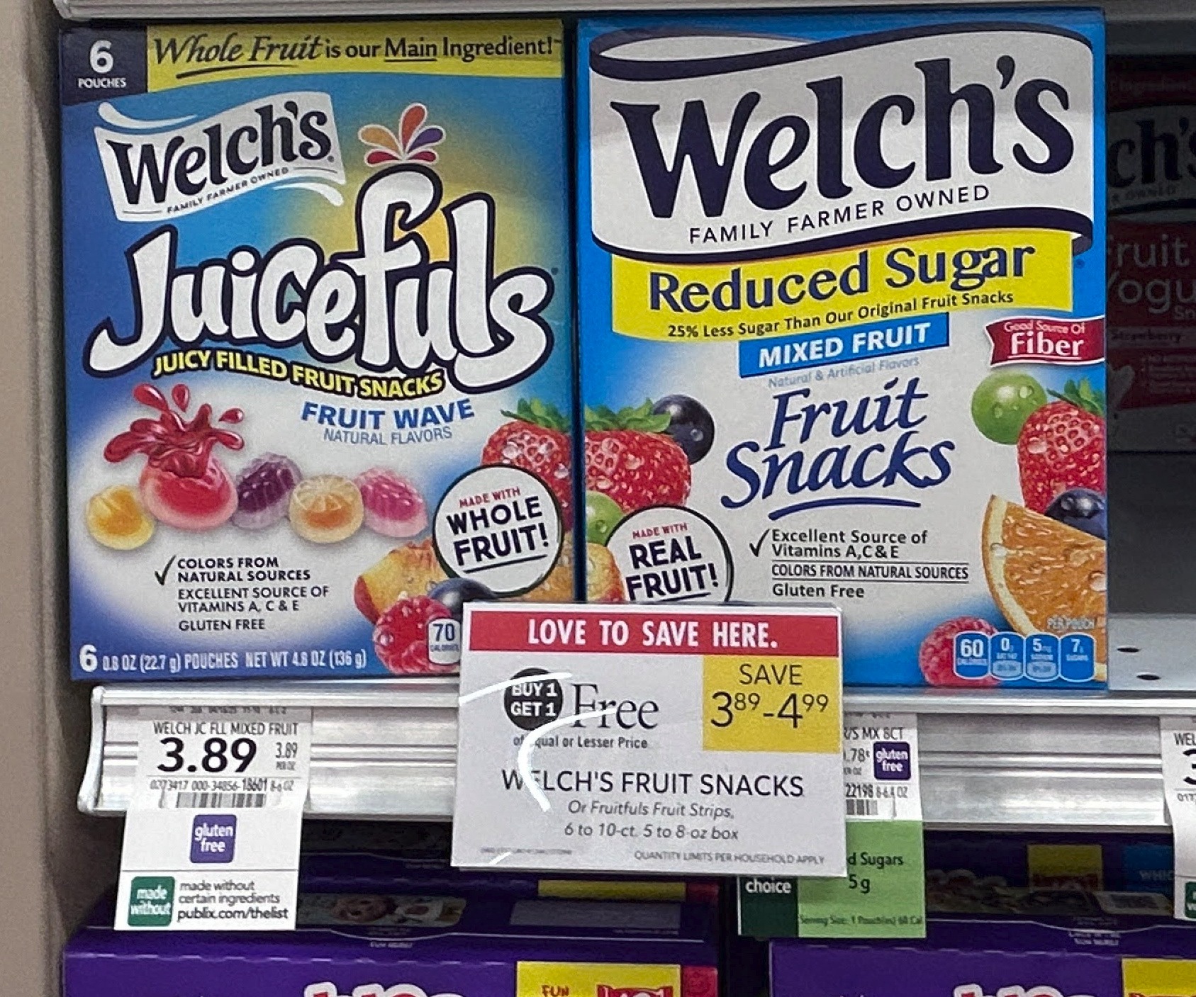 Welch’s Fruit Snacks, or Fruitfuls Fruit Strips, 6 to 10 ct, 5 to 8 oz box, BOGO $3.89 – $4.99