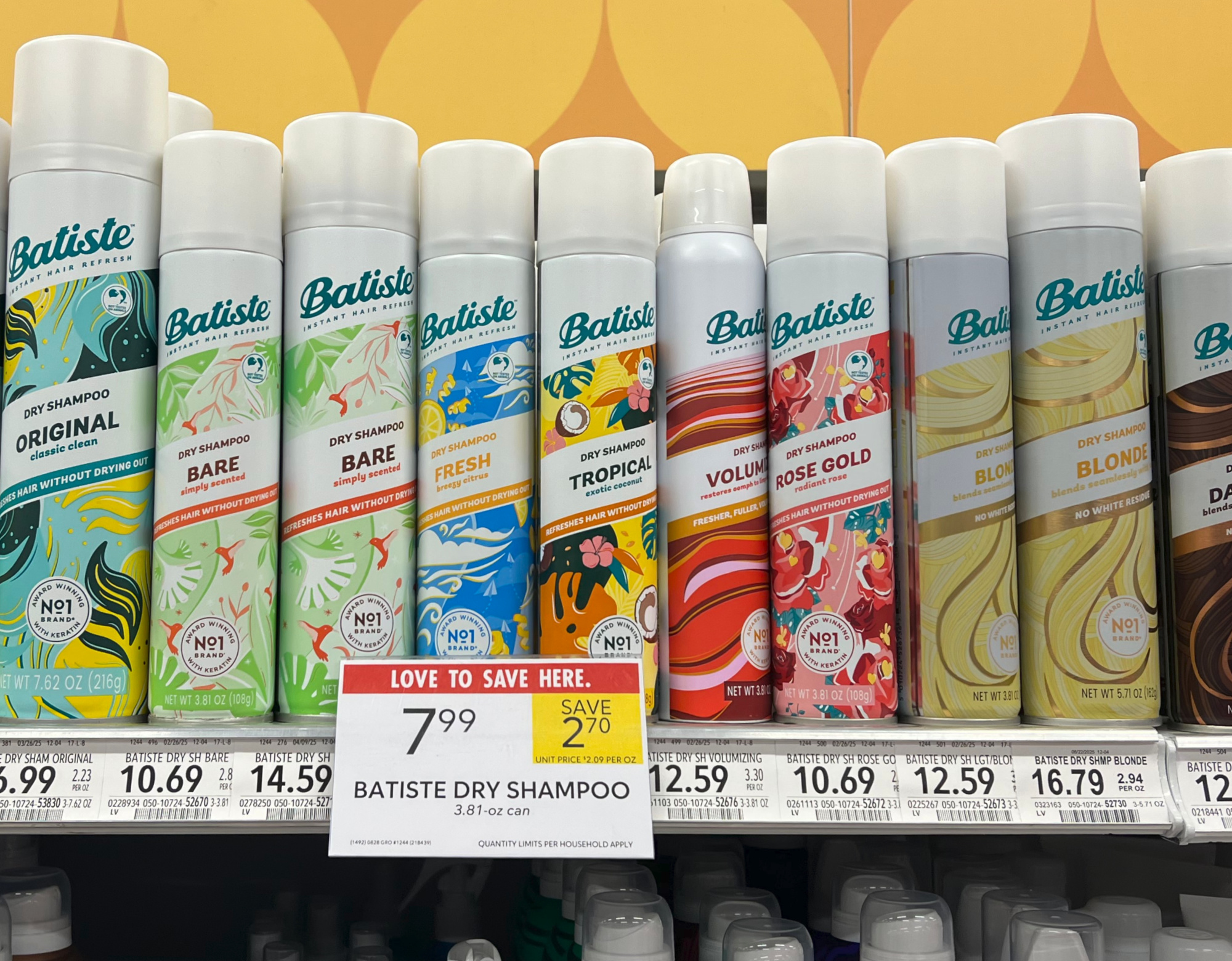 Got a late start and no time to shower? Be ready with a can of Batiste dry shampoo. With the sale and coupon, you can get the cans for just $5.99 each.