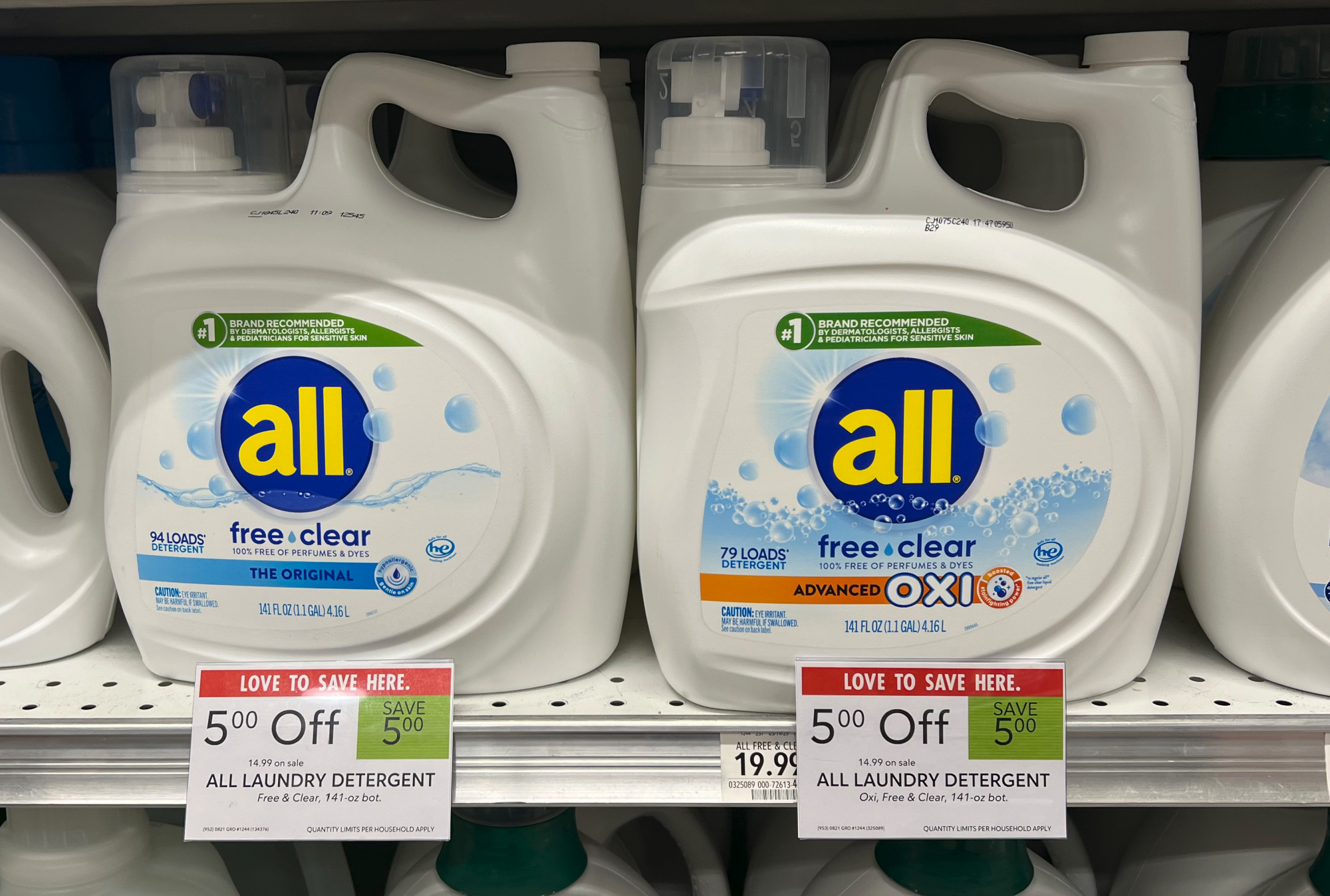After the sale and cash back offer, the large containers of All detergent will be as low as $11.99 this week at Publix. Check your laundry supplies and grab a deal if you need to restock.