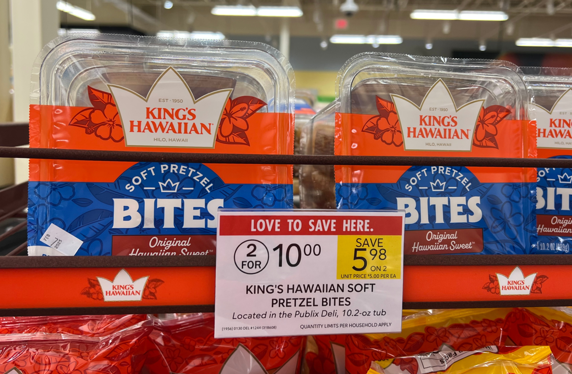 You can get a great deal on King’s Hawaiian Soft Pretzel Bites at Publix. With the sale and a coupon, you can grab the containers for $4.50 each.
