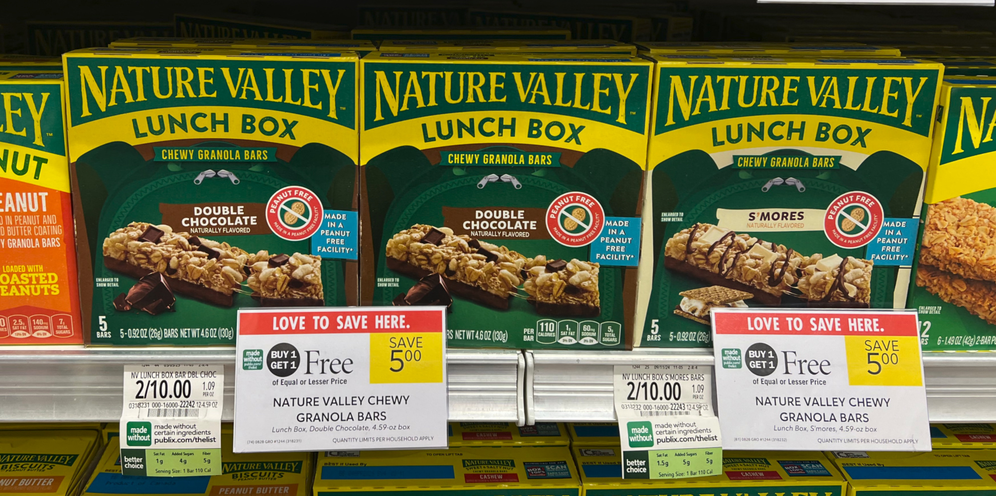 –$0.50/2 Nature Valley, Fiber One, Protein One, General Mills Cereal Bars, Chex Mix Bars, LARABAR Bars OR EPIC Bars (Publix Digital Coupon)
