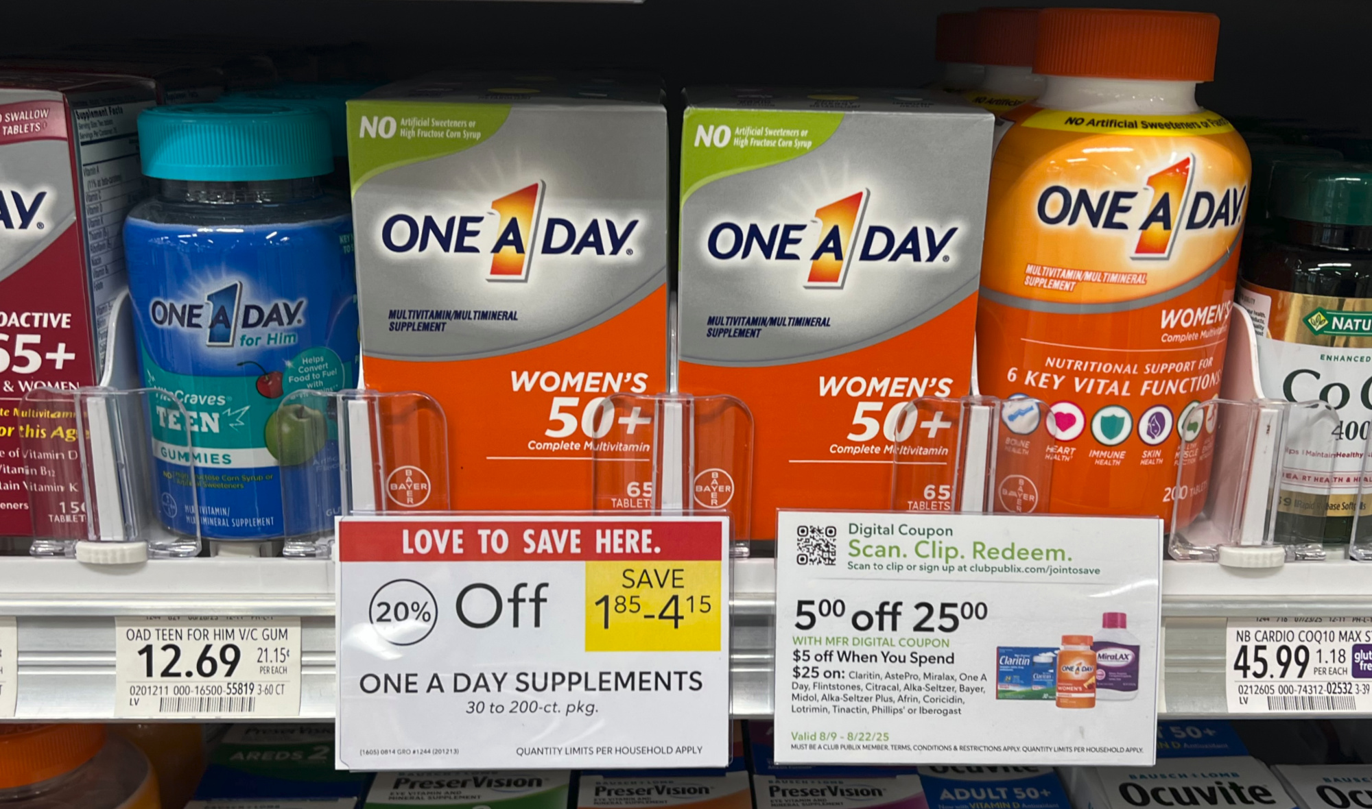 –$4/1 One A Day multivitamin 110ct or larger (Publix Digital Coupon)