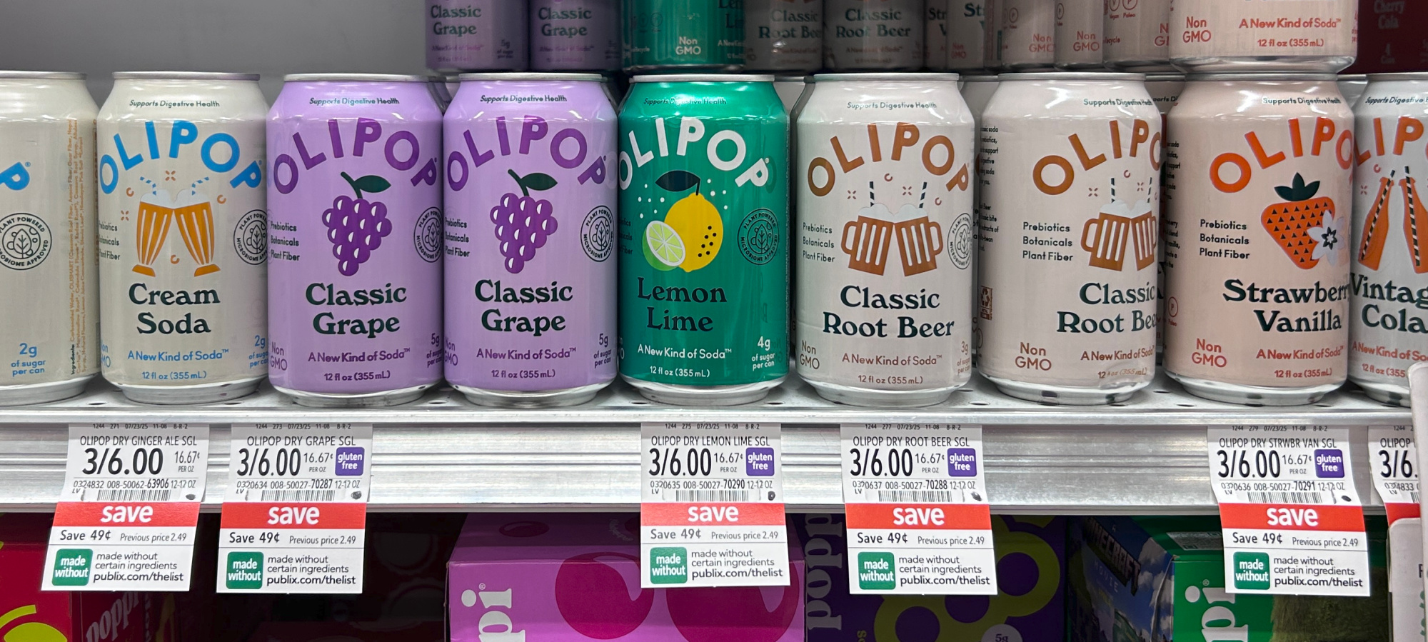 Head over to Publix for a sweet deal on Olipop Soda! After combining the current sale with the cash back offer, you can grab a can for just $1.75.