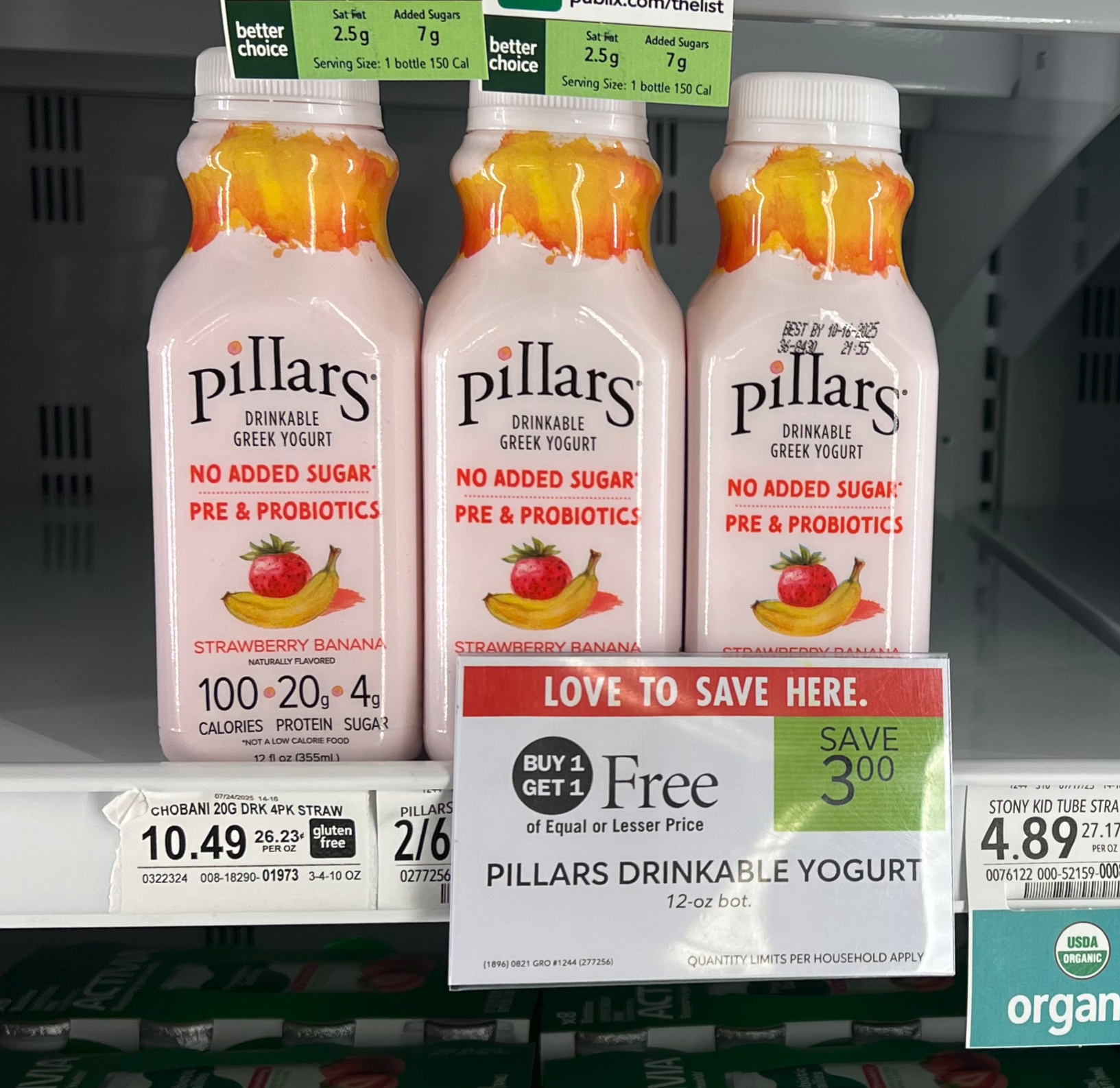 Pillars Drinkable Yogurt, 12 oz bot, BOGO $3
