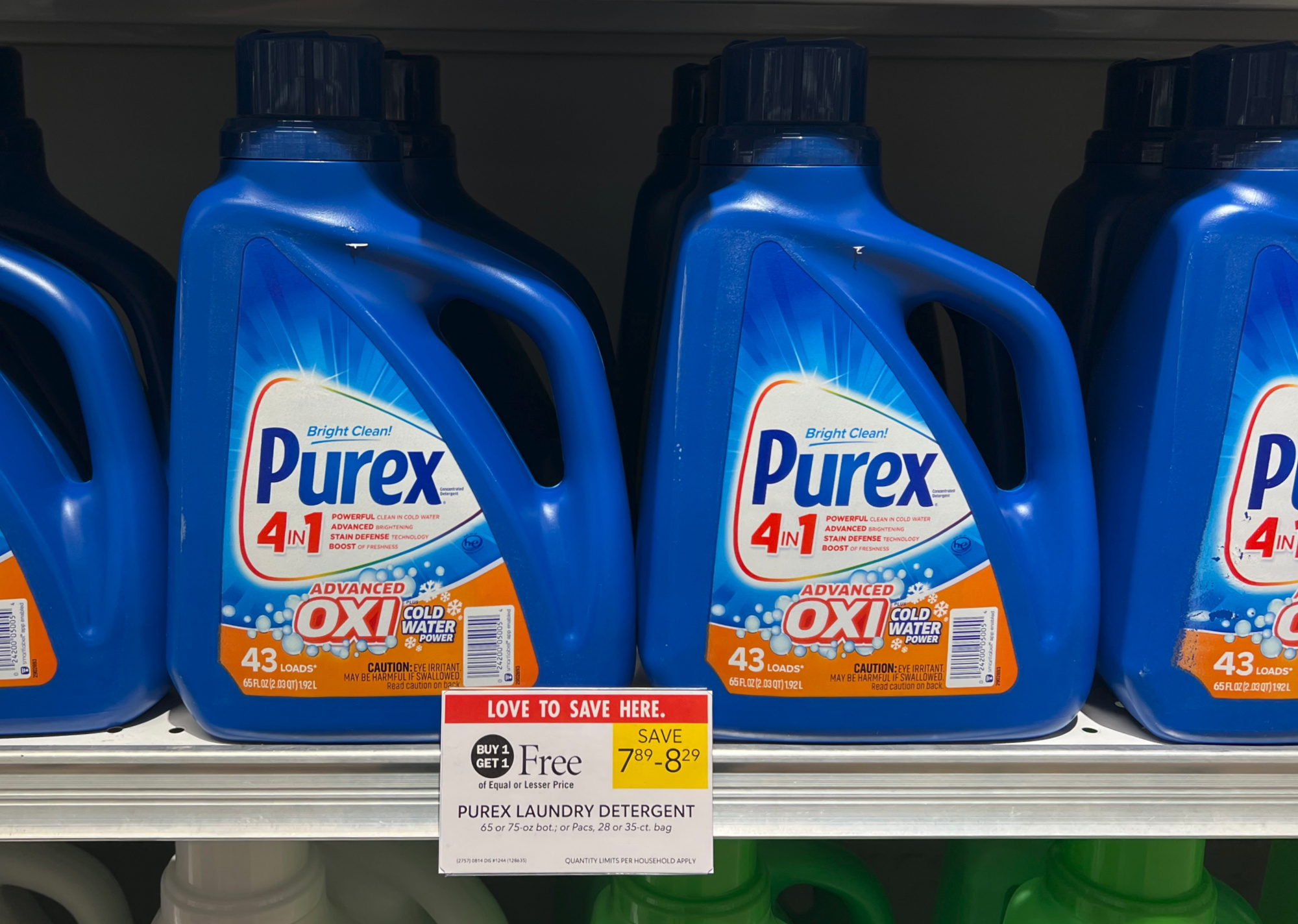 Purex Laundry Detergent, 65 or 75 oz, or Pacs, 28 or 35 ct, BOGO $7.89 – $8.29