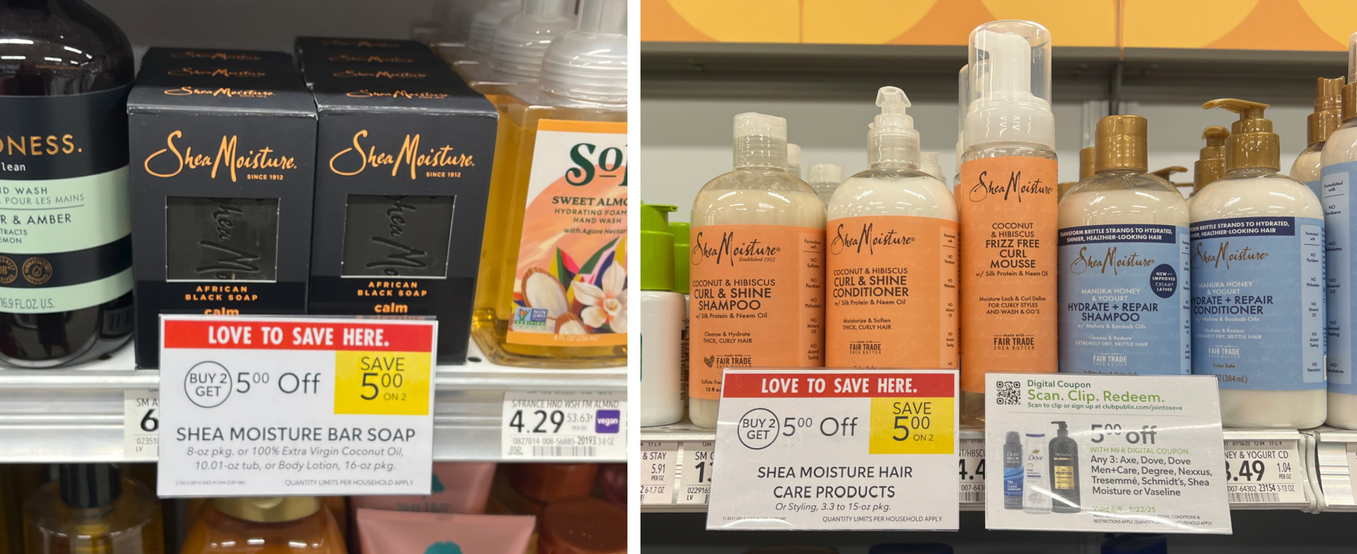 –$5/2 Shea Moisture hair product (excludes: single-use packettes, trial and travel size) (Publix Digital Coupon)