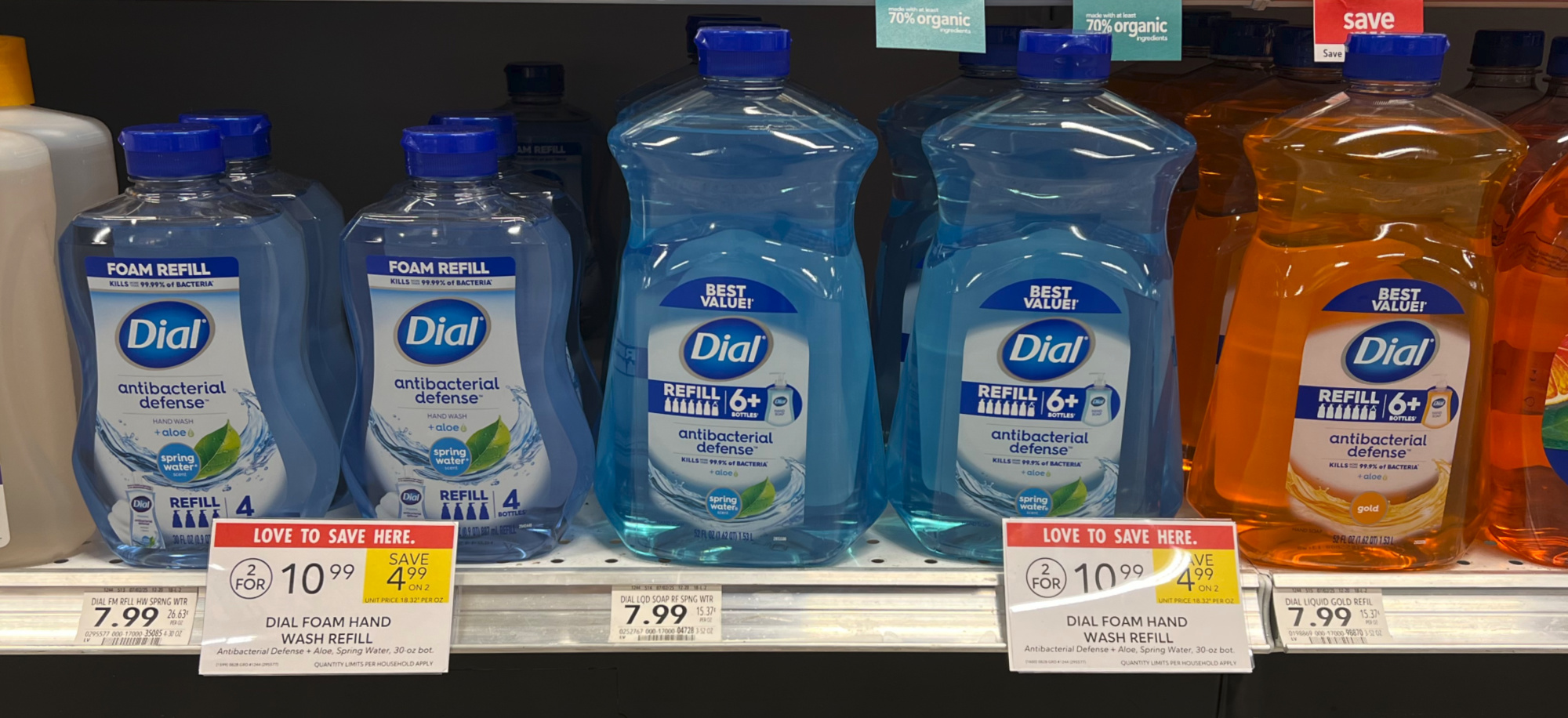 You can get a discount on Dial Hand Soap Refills this week at Publix. Load the cash back offer and grab a large refill bottle for as little as $4.50.