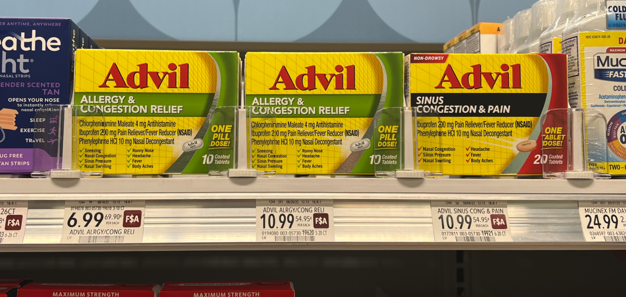 Advil Sinus Congestion & Pain, Allergy & Congestion Relief, or Multi-Symptom Cold & Flu, Advil Cold & Sinus, or Allergy Sinus, 10 to 40 ct, $6.99+