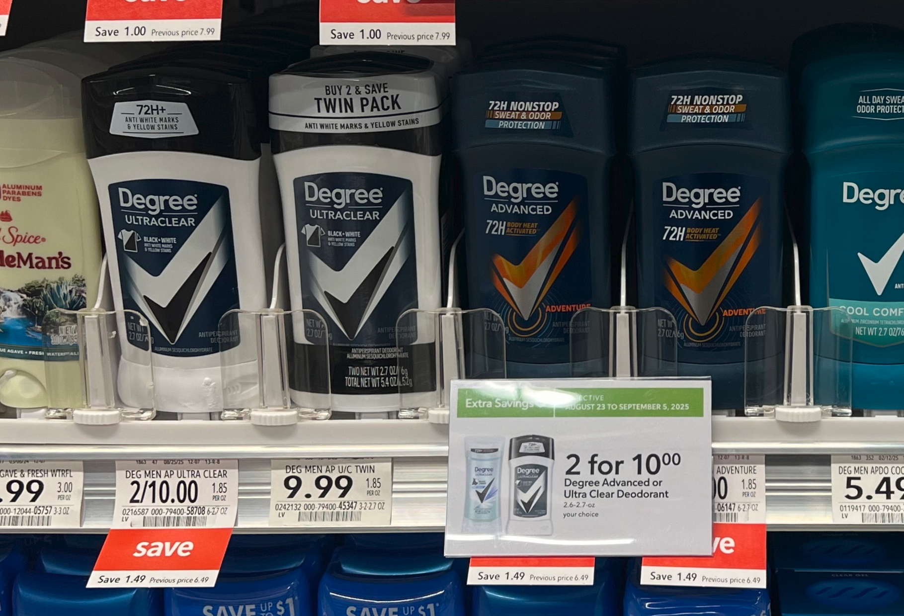 Degree Advanced, or Ultra Clear Deodorant, 2.6 to 2.7 oz, 2/$10 (reg $6.49)