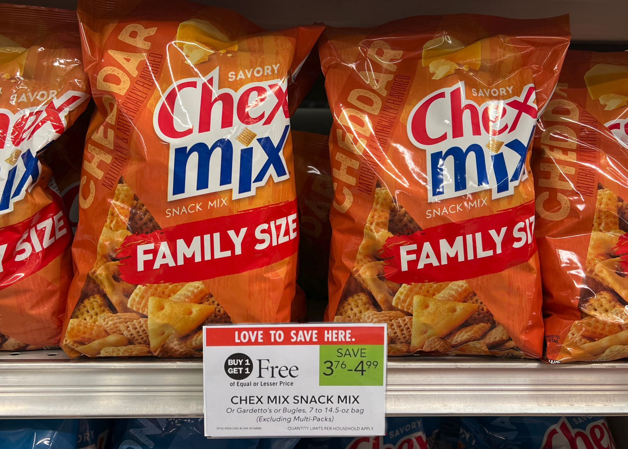 Chex Mix, Family Size, 13.5 to 14.5 oz bag, BOGO $4.99