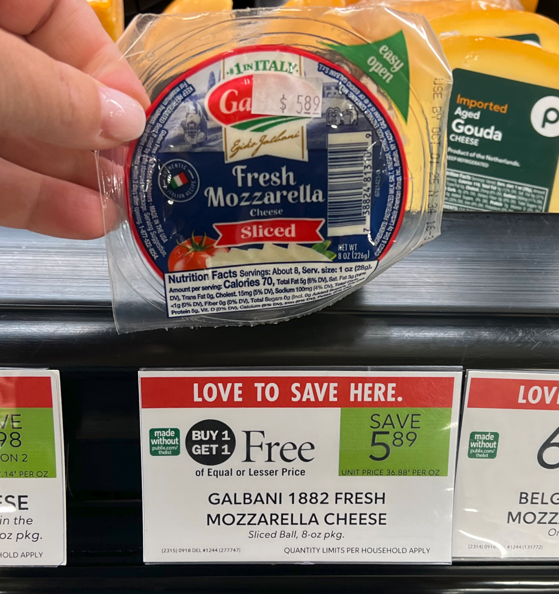 Pick up some tasty cheese for your next salad or recipe. With the sale and coupon you pay just $1.95 for a ball of Galbani Fresh Mozzarella. I love this for a Caprese Salad or a tasty Margherita pizza… yum!