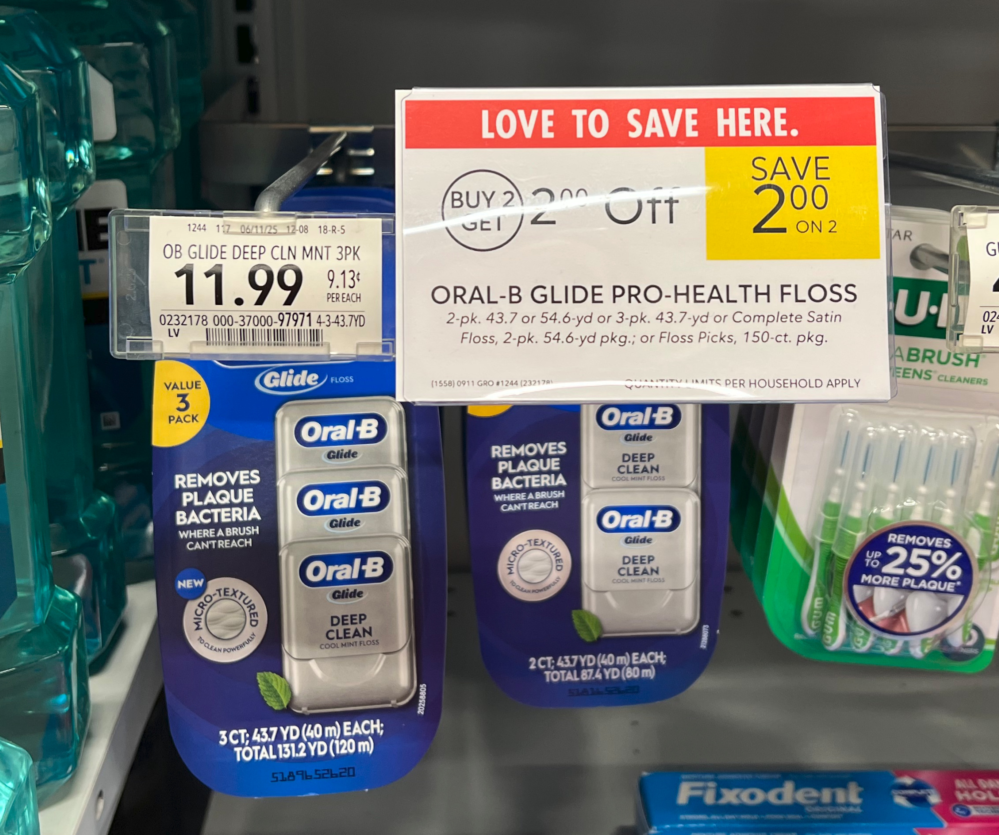 –$1/1 Oral-B Glide Manual Floss OR Oral-B Expanding Floss OR Oral-B Glide Floss Picks (Excludes Essential Floss, Satin Floss, Oral-B Fresh Mint Picks and trial/travel size) (Publix Digital Coupon)