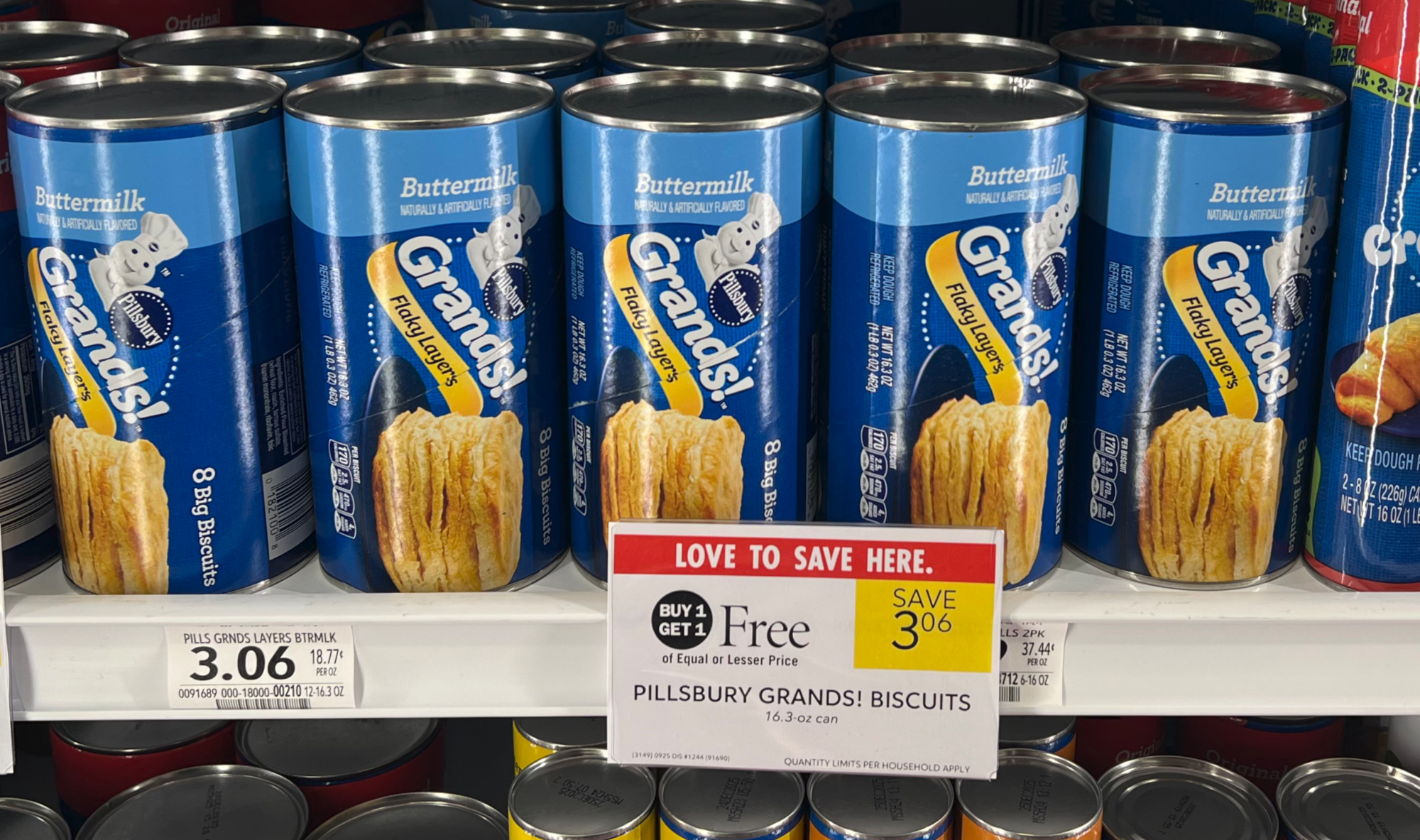 Pillsbury Grands! Biscuits, 16.3 oz can, BOGO $3.06
