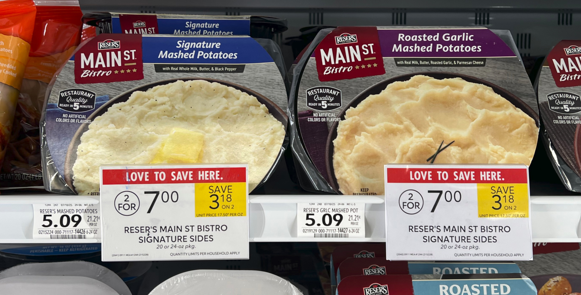 Reser’s Main St. Bistro Signature Mashed Potatoes, or Macaroni & Cheese, 20 or 24 oz, 2/$7 (reg $5.09)