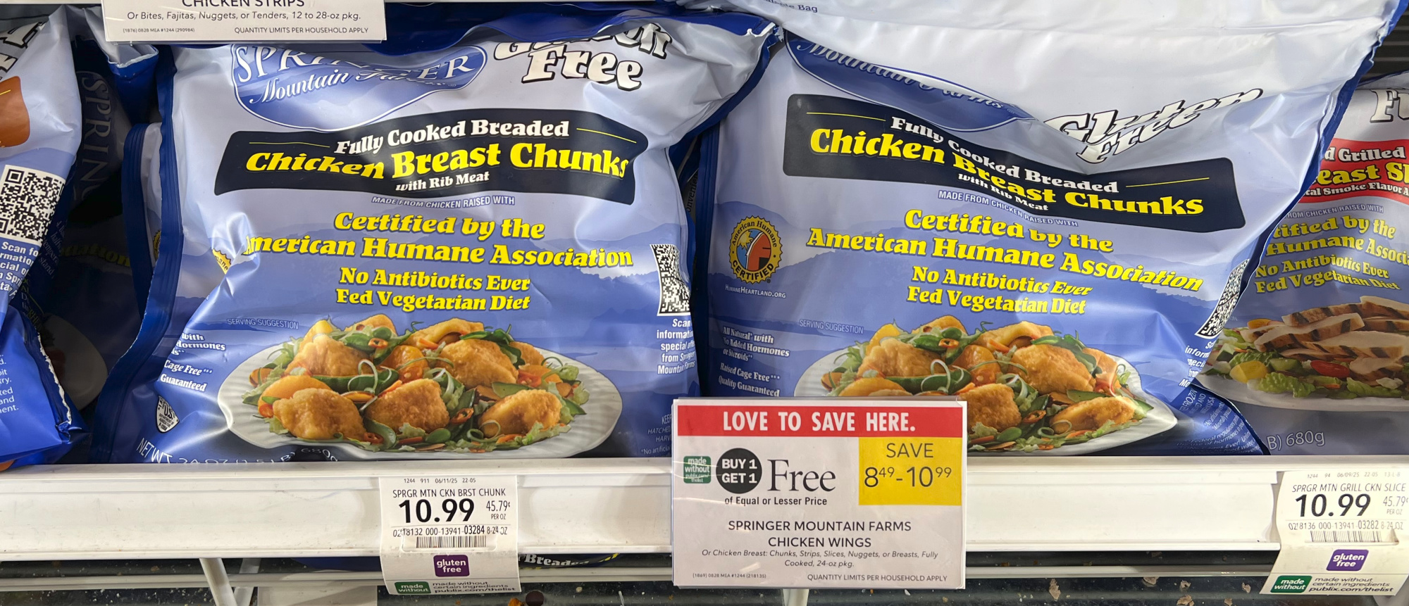 Springer Mountain Farms Chicken Breast Strips, Chunk, Slices, or Nuggets, or Wings, 24 or 32 oz, BOGO $8.49 – $10.99