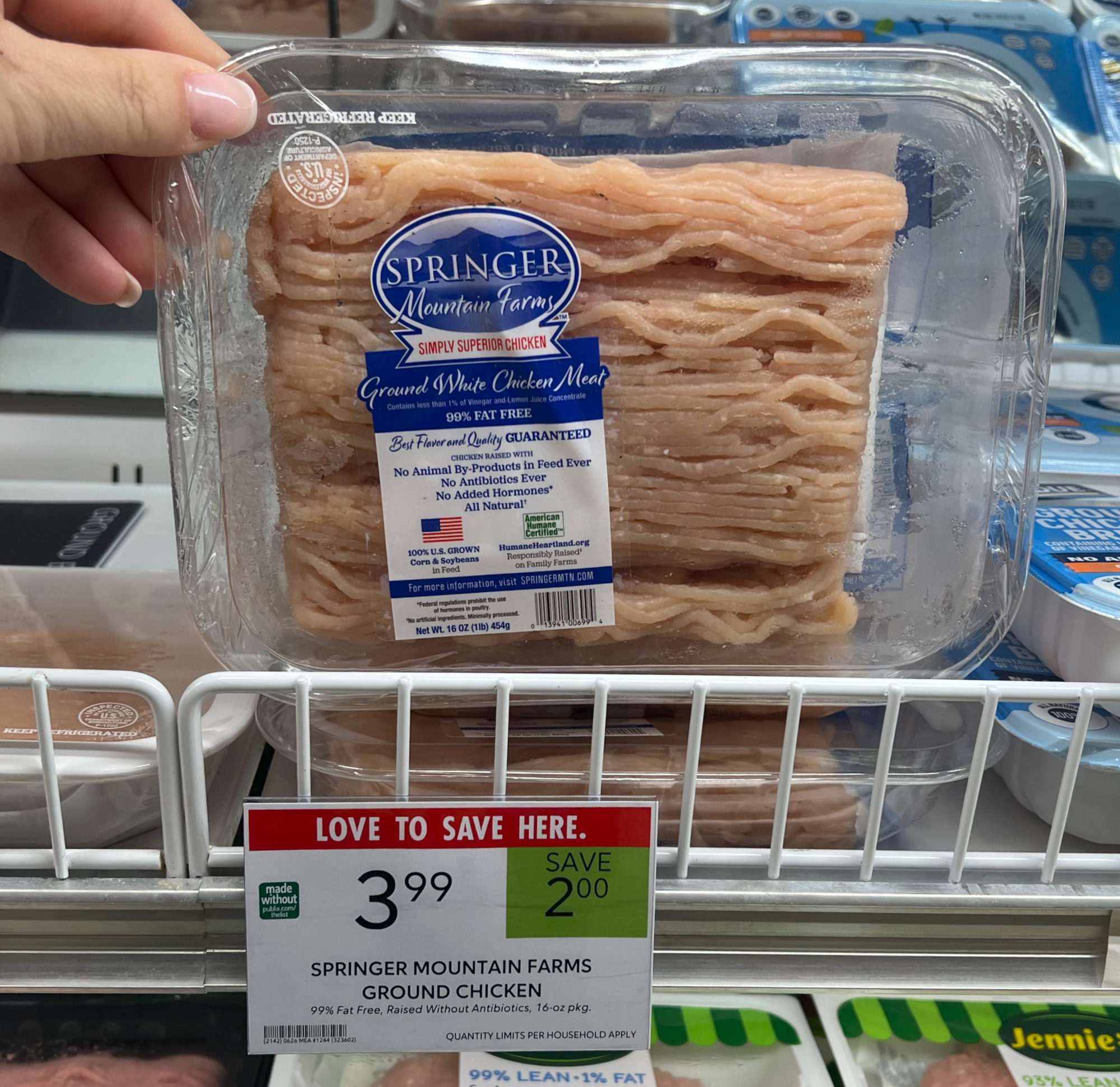 Springer Mountain Farms Ground Chicken, 99% Fat Free, $3.99 (reg $5.99)