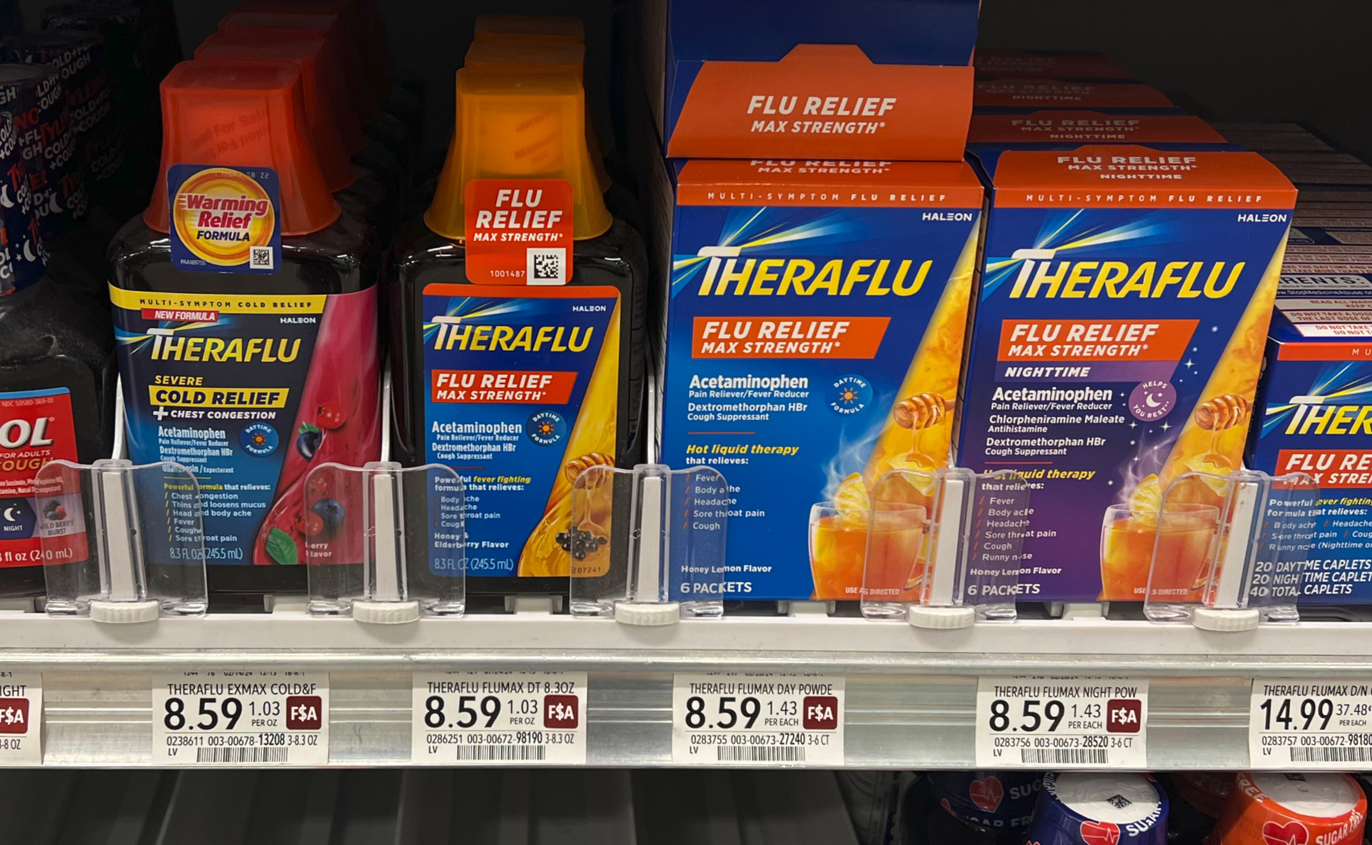 Theraflu, 6 ct, or 8.3 oz, $8.59