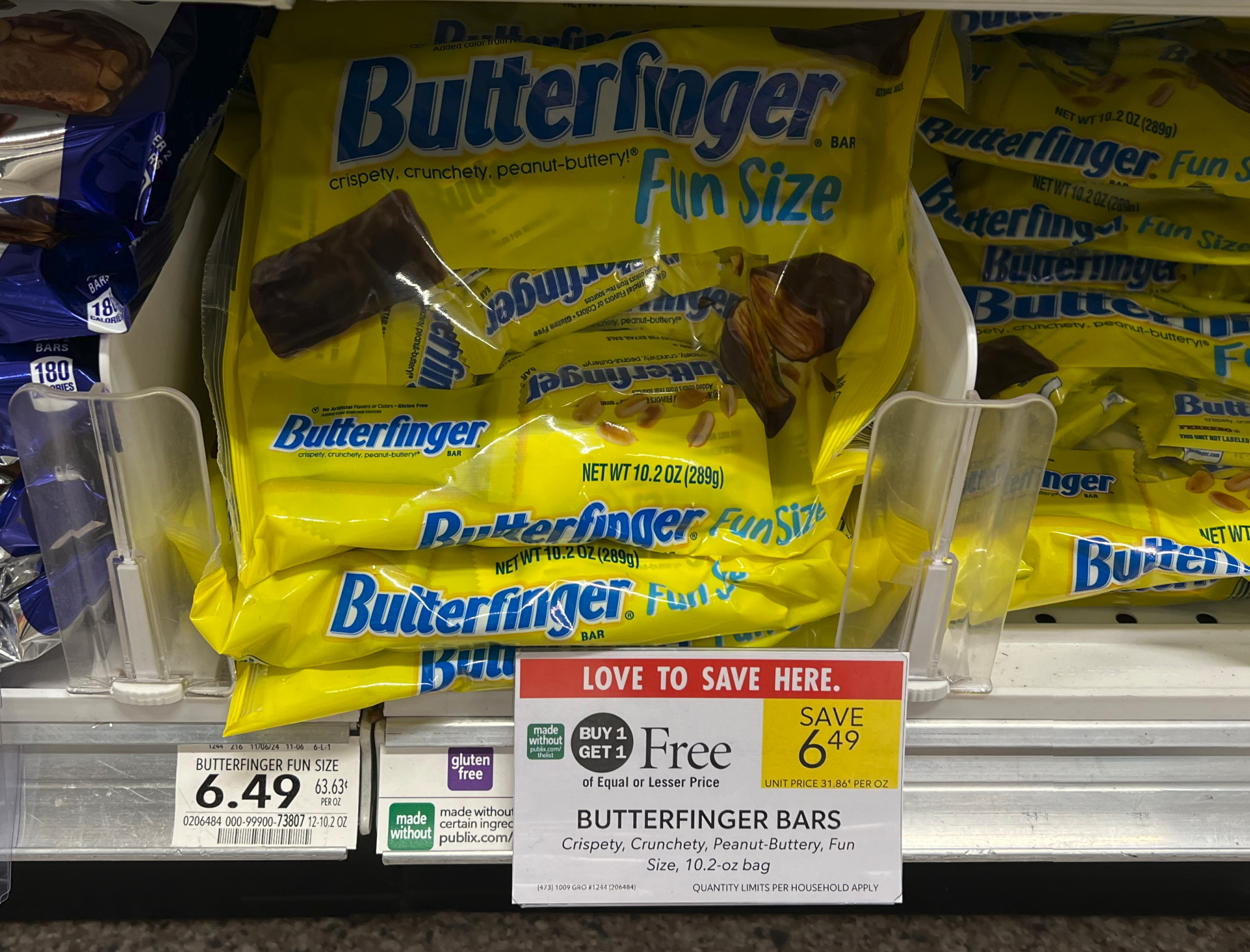 –$5/3 Assorted Chocolate Brands, 6.8-10.2oz (includes Butterfinger, CRUNCH, Baby Ruth, 100Grand, Kinder Bueno) (Publix Digital Coupon)