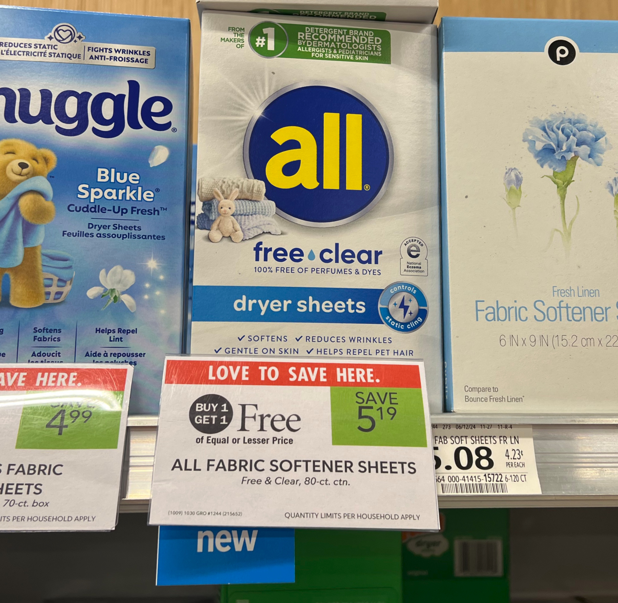 All Fabric Softener Sheets, 80 ct, BOGO $5.19