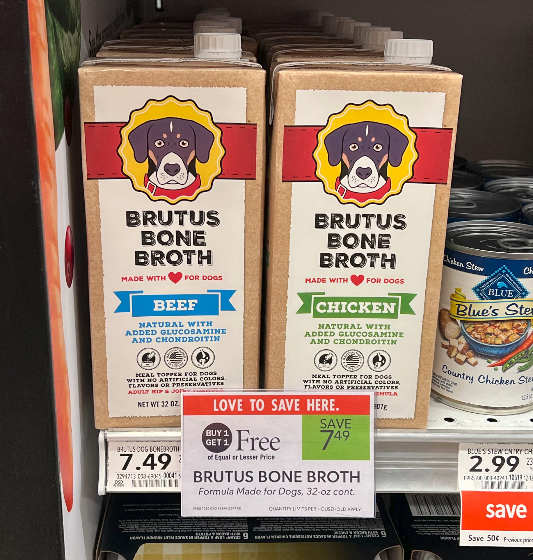 You can grab the cartons of Brutus Bone Broth for Dogs for just $1.75 at Publix. Just combine the BOGO sale with that cash back offer to get a discount on a healthy treat for your dog!