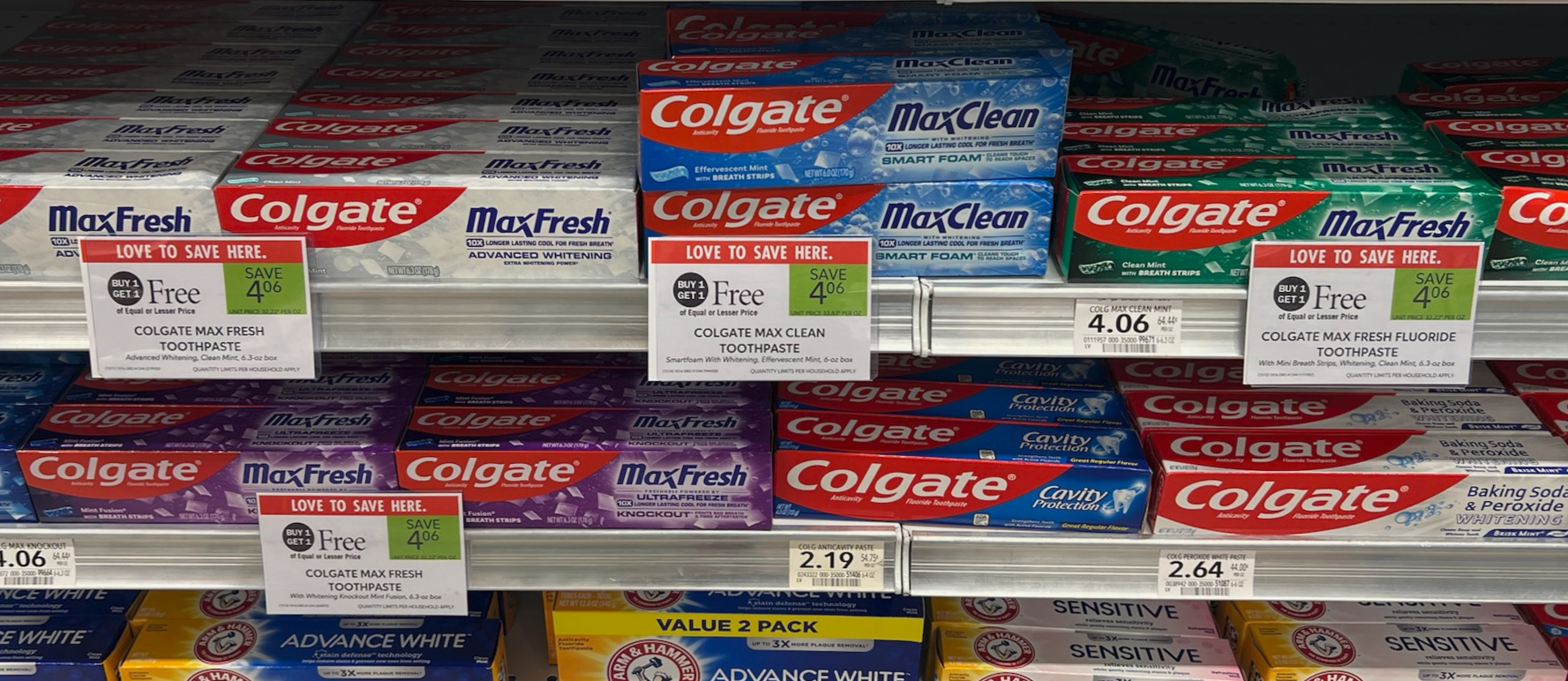 Grab a nice deal on Colgate MaxFresh Toothpaste with the digital coupon and BOGO sale at Publix. You’ll pay as little as 3¢ for a tube after discounts.