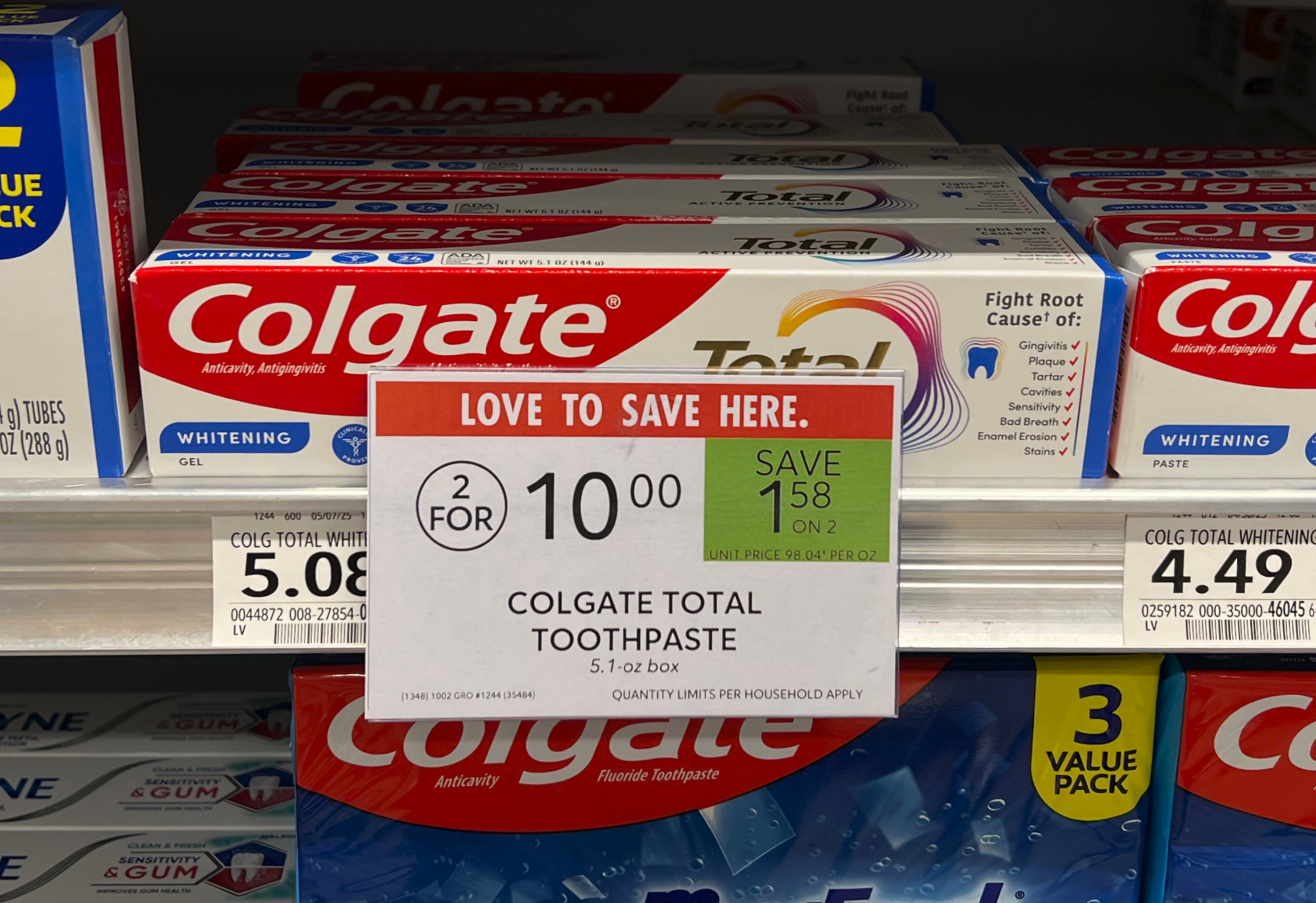 –$2/1 Colgate Toothpaste (3oz or larger; excludes Cavity Protection, Baking Soda & Peroxide, Sparkling White, Triple Action, Kids, bonus packs and 3pack Toothpastes) (Publix Digital Coupon)