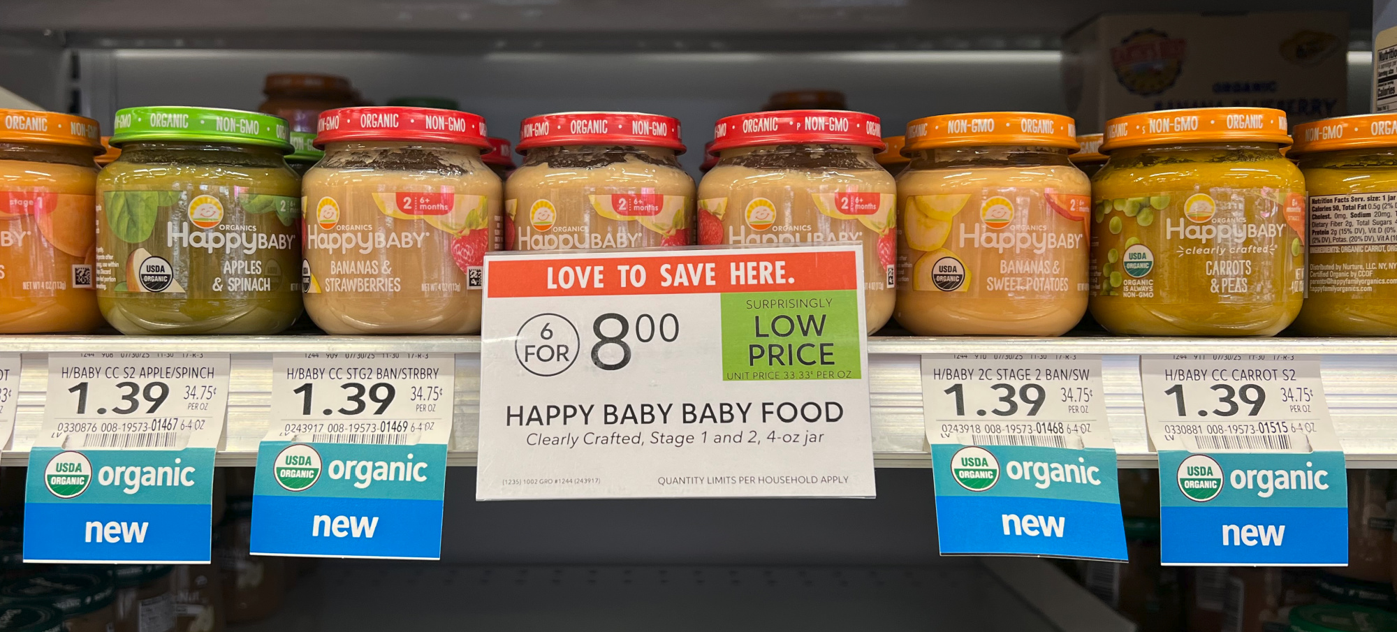 After sale and coupon, you can pick up Happy Baby Food jars for as little as $1 each. Mix and match your little one’s faves and score a great deal at Publix.
