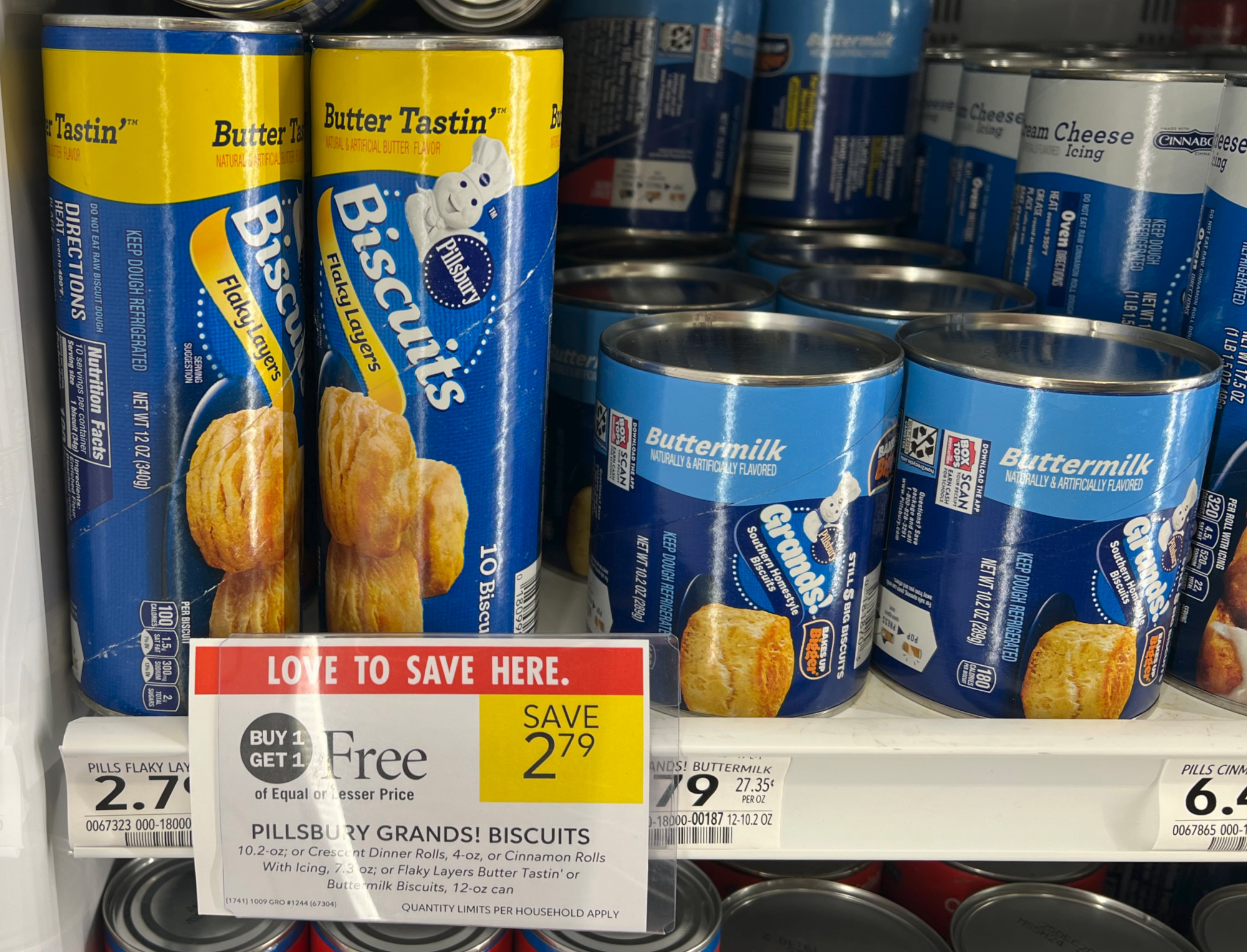 Pick up the cans of Pillsbury Baked Goods for as little as 90¢ each this week at Publix. Combine the sale and coupon to get your favorites at a great price.
