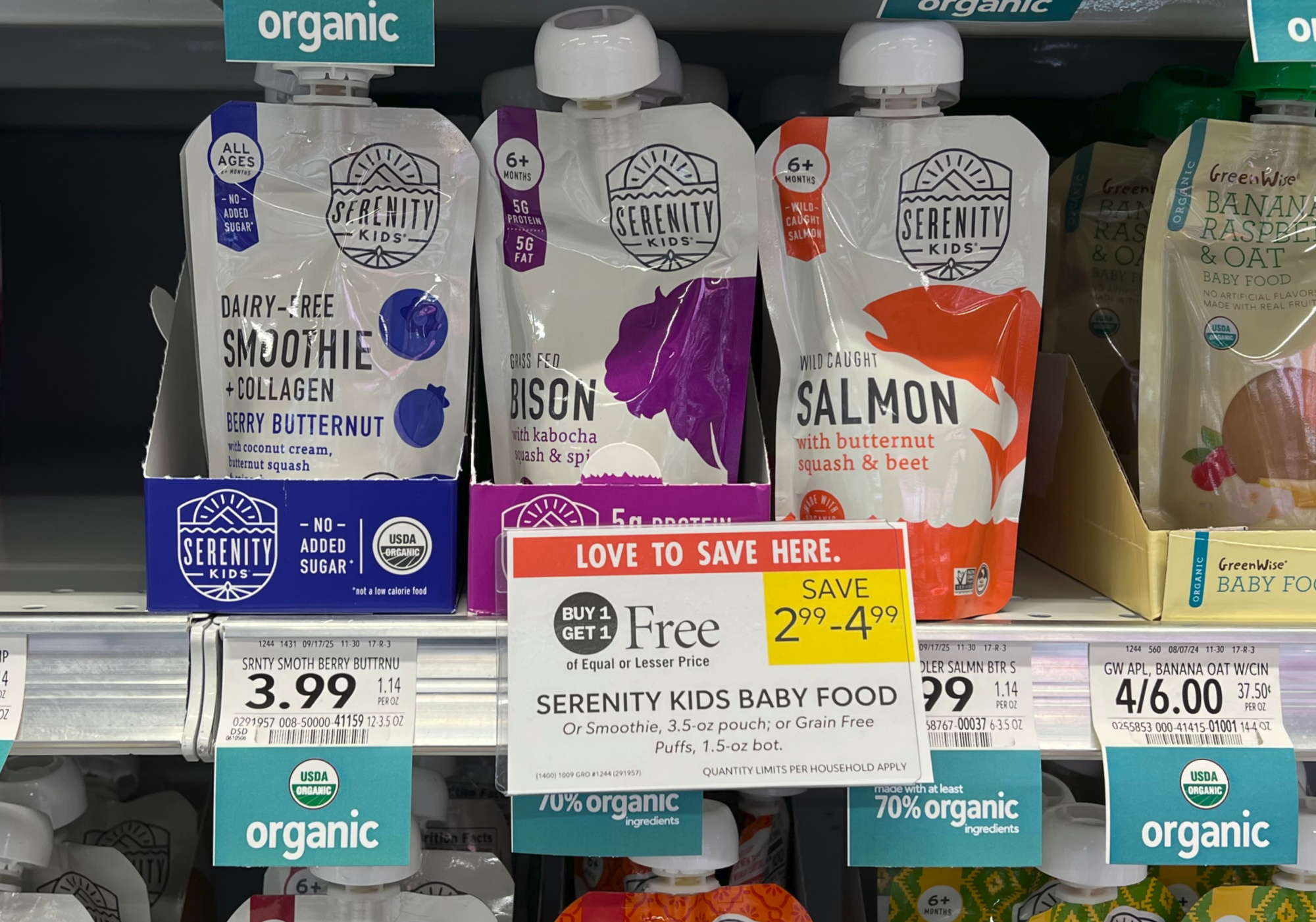 You can grab Serenity Kids Baby Food for as little as 75¢ per pouch at Publix. Just combine the BOGO sale with a cash back offer to get a fantastic price on food for your little one.