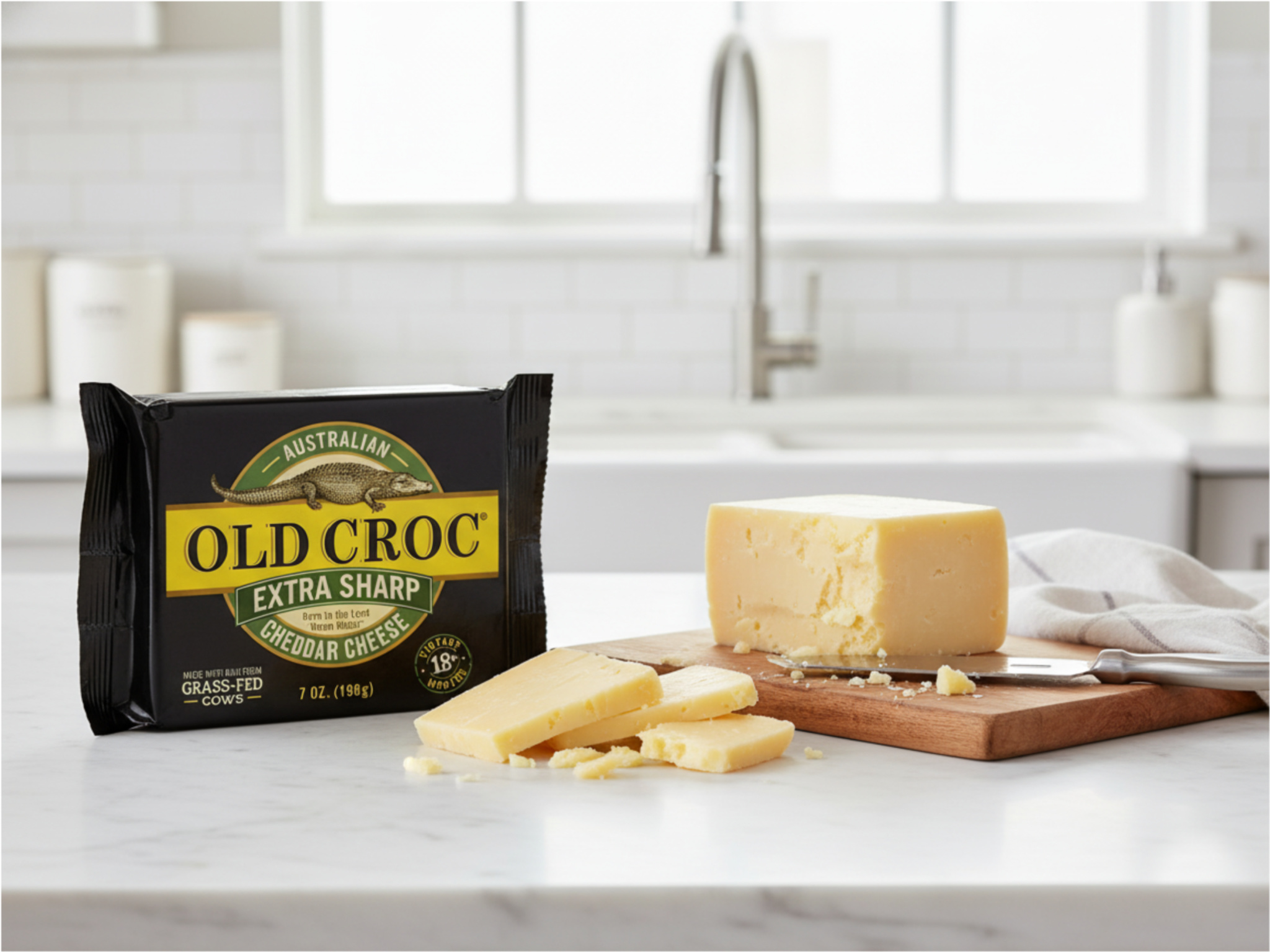 Old Croc Extra Sharp White Cheddar is aged 18 + months for a full, rich, robust flavor, not for the faint of heart. It’s firm and crumbly with a fine granular texture—the true sign of an authentic, mature cheddar.