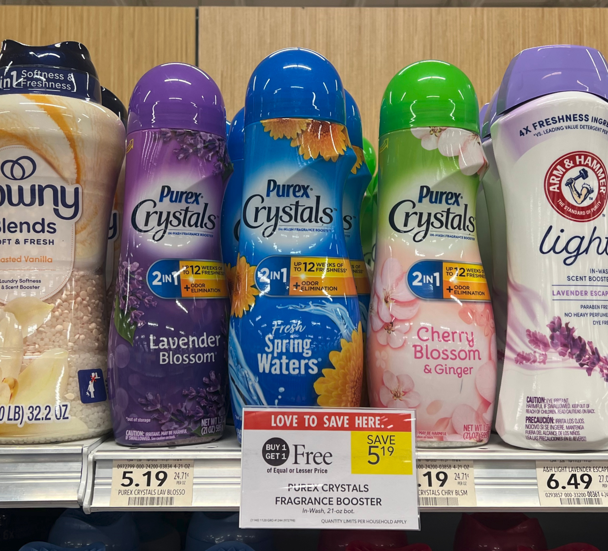 Combine the BOGO sale and cash back offer to get Purex Crystals In-Wash Fragrance Booster for as little as $2.10 this week at Publix.