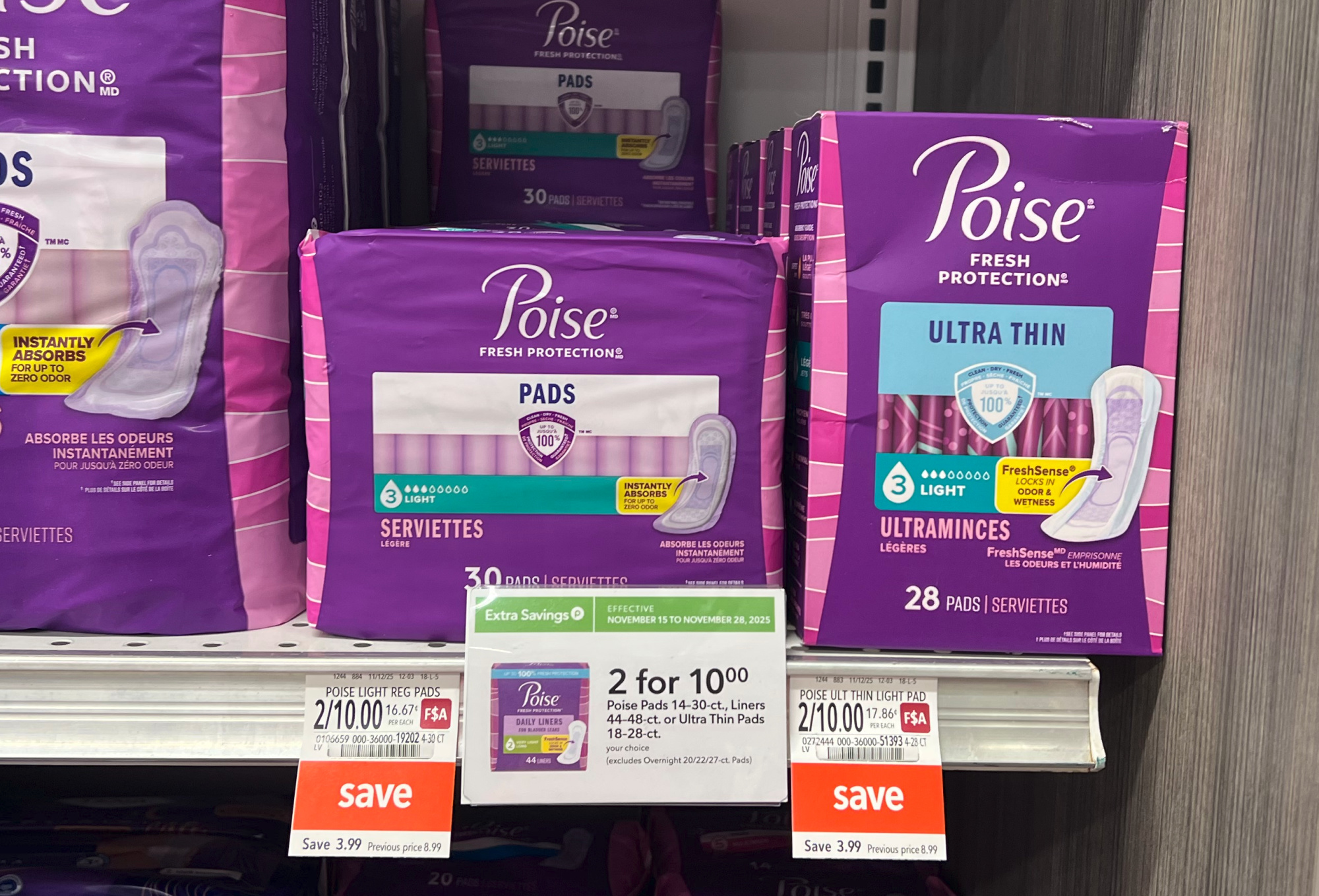 Head into Publix and look for a discount on Poise Liners & Pads. By pairing the sale and coupon, you can get the size you need for as little as $1.74 per pack.