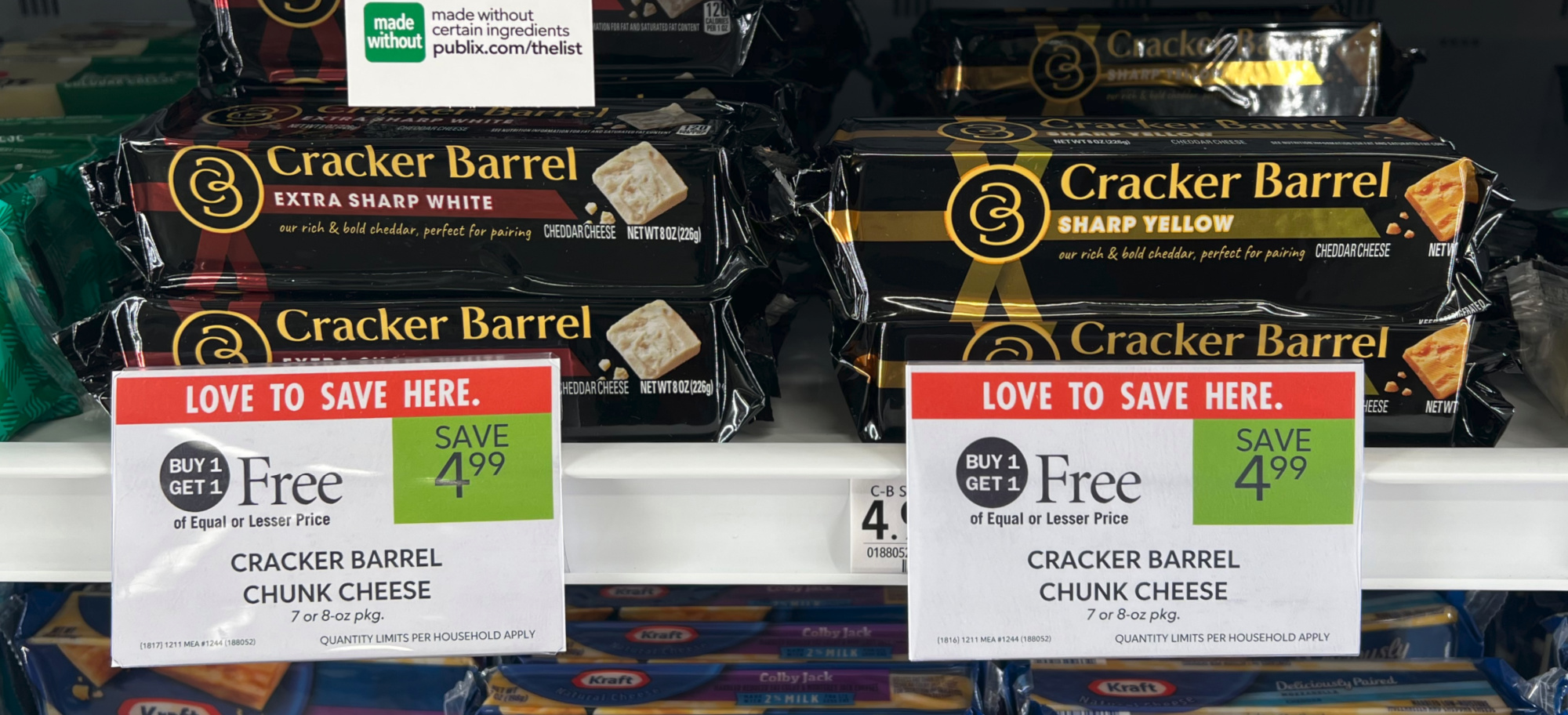 Need to restock your cheese supply? Pick up a nice discount on Cracker Barrel Chunk Cheese this week at Publix. Combine the BOGO sale and cash back offer to pay just $2 per block!