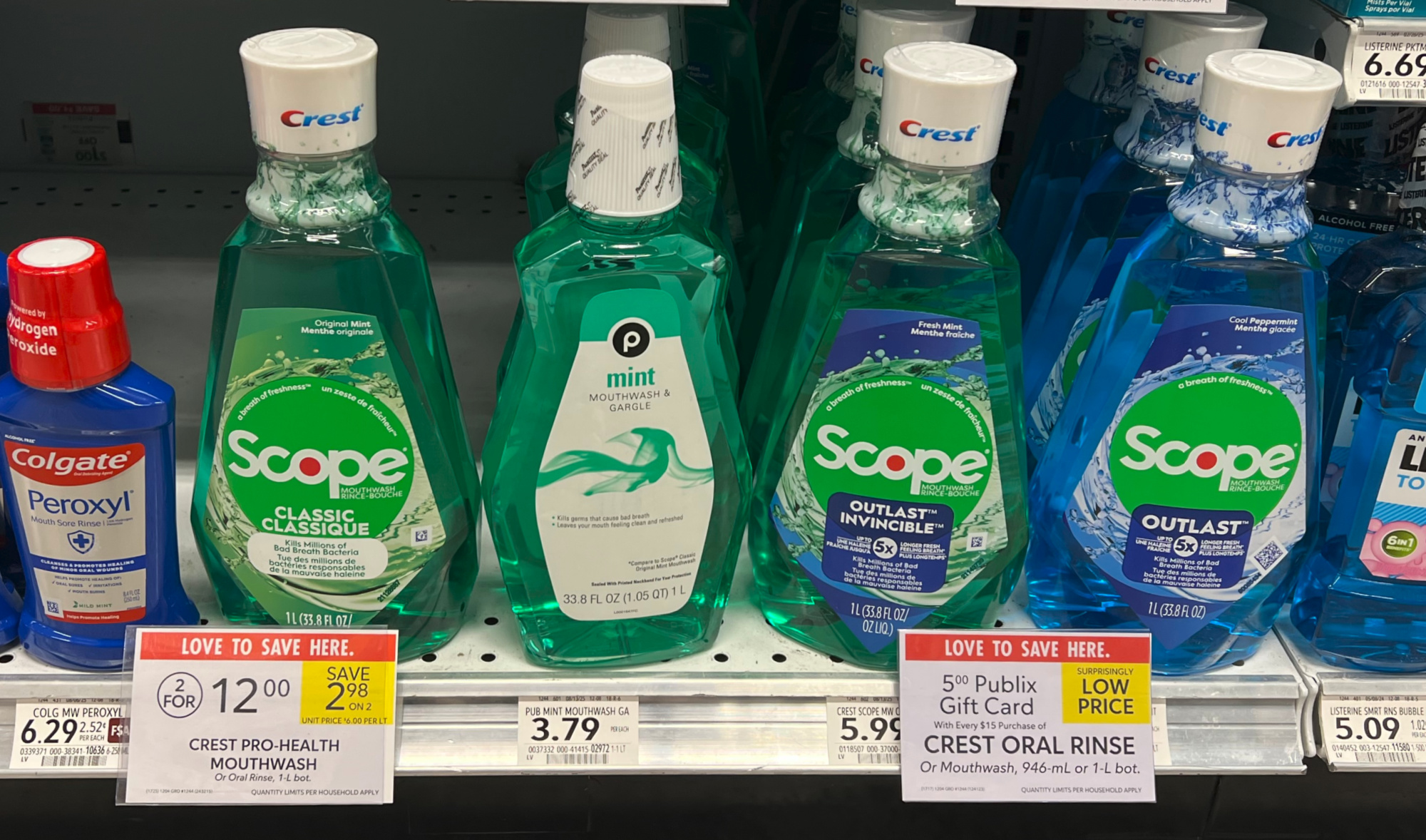 You can pick up a nice discount on Crest Scope Mouthwash right now at Publix. After discounts, you pay as little as $2.67 per bottle the next time you shop.