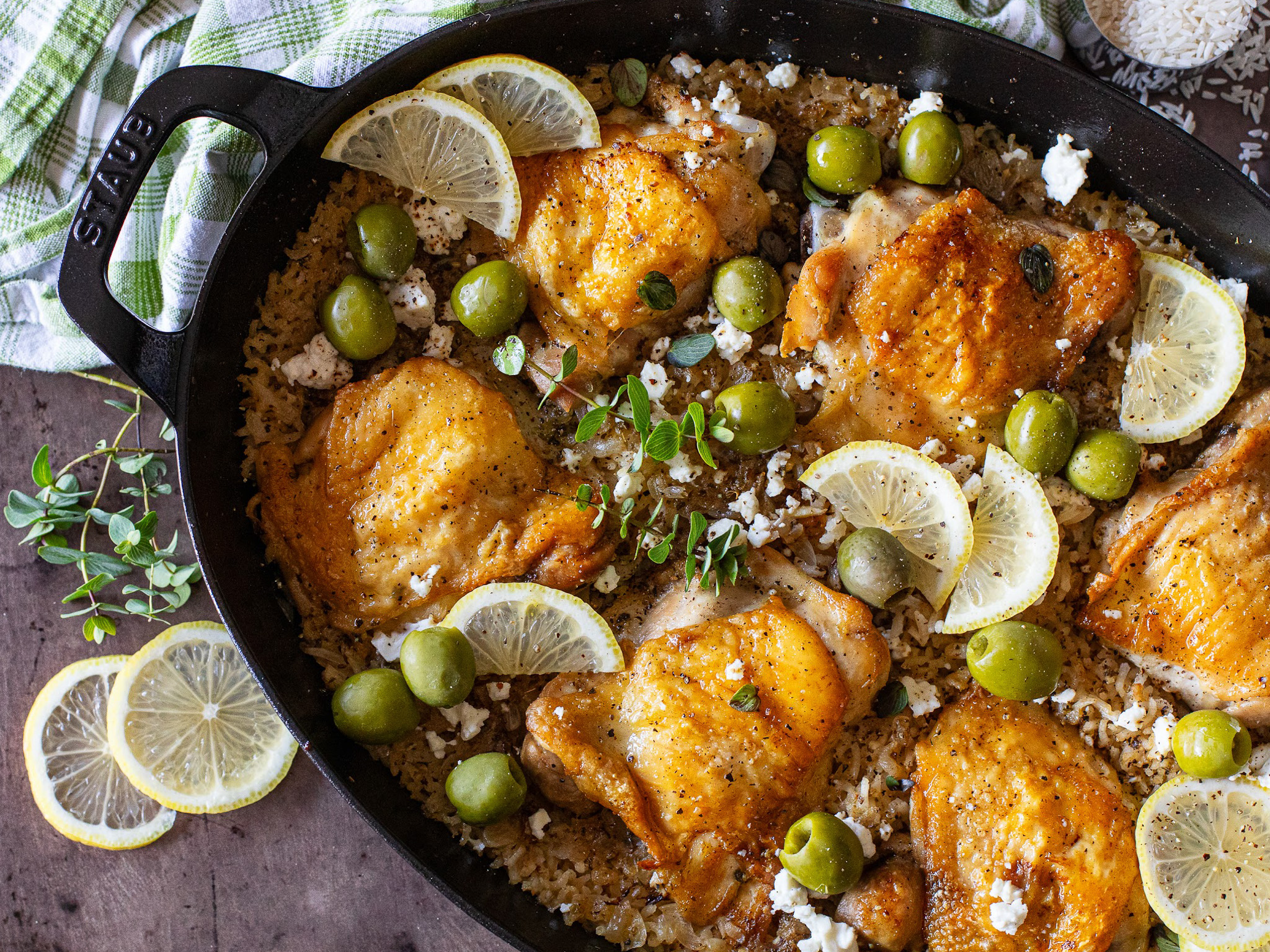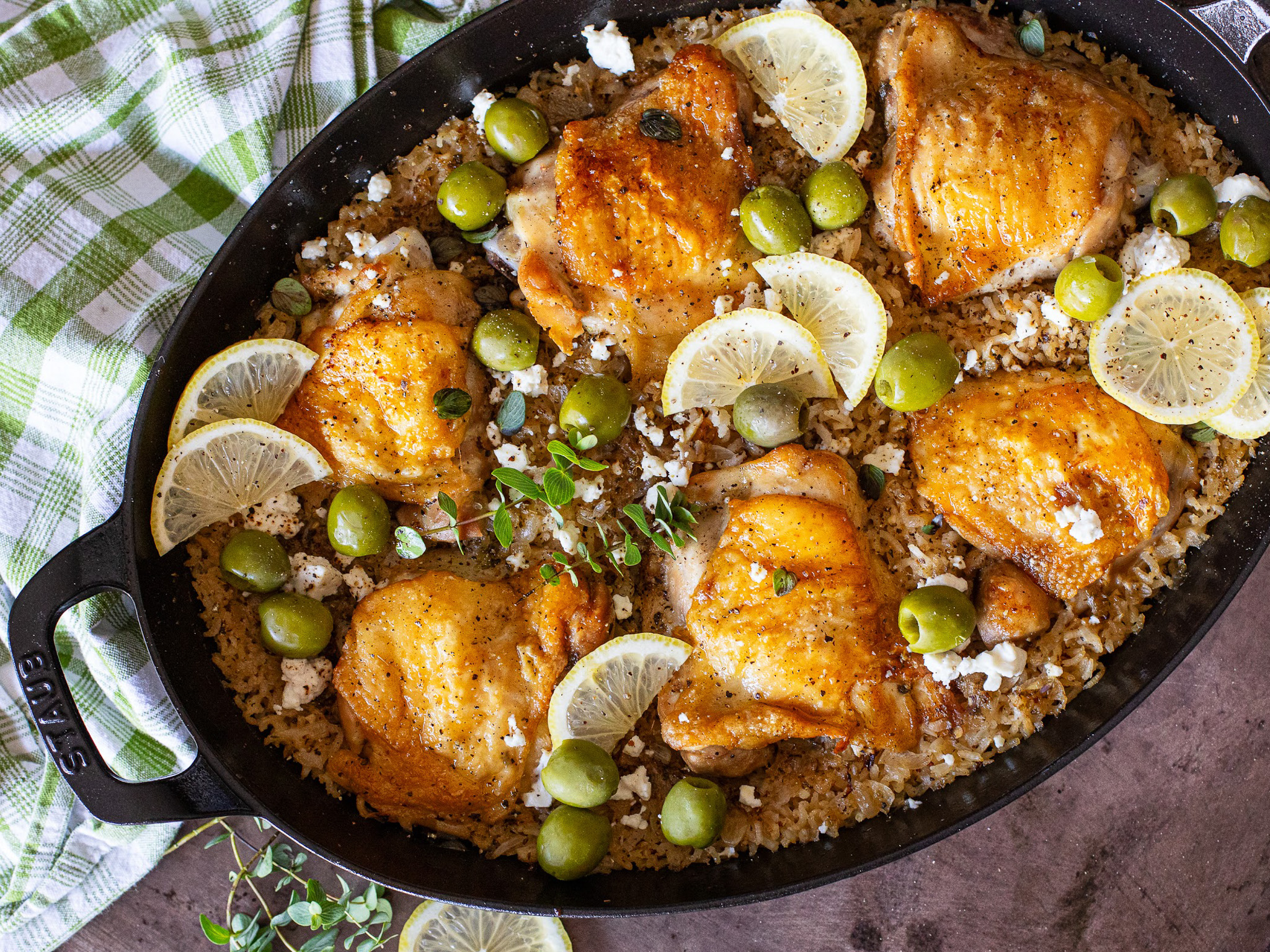 Stock up now and Make it Wow™ with my Mediterranean Chicken & Rice with Feta & Olives!