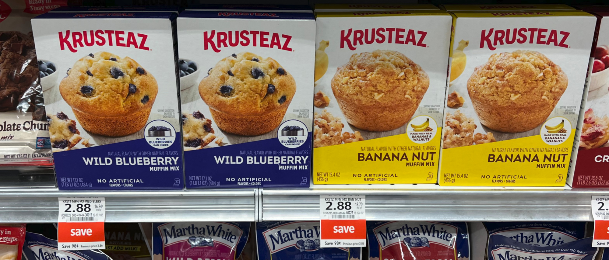 Krusteaz Muffin Mix, 15.4 to 17.1 oz, $2.88 (reg $3.86)