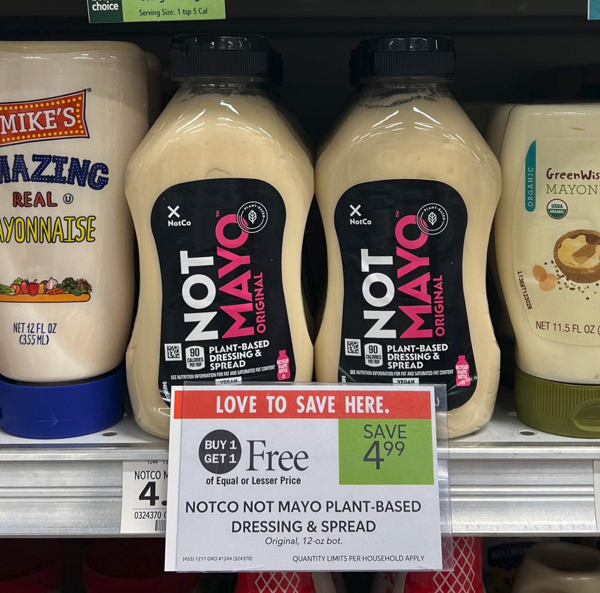 Look for a nice deal on Notco Not Mayo Plant-Based Dressing & Spread at Publix. Combine the BOGO sale and cash back to pay $1.50 per bottle.