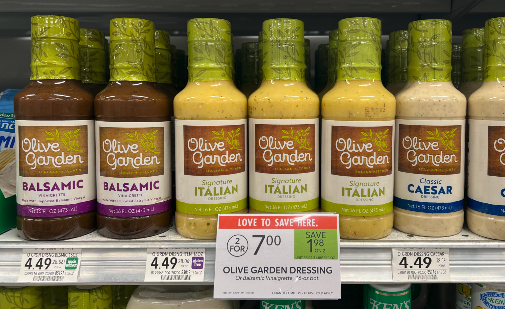 Olive Garden Dressing, or Balsamic Vinaigrette, 16 oz, 2/$7 (reg $4.49)