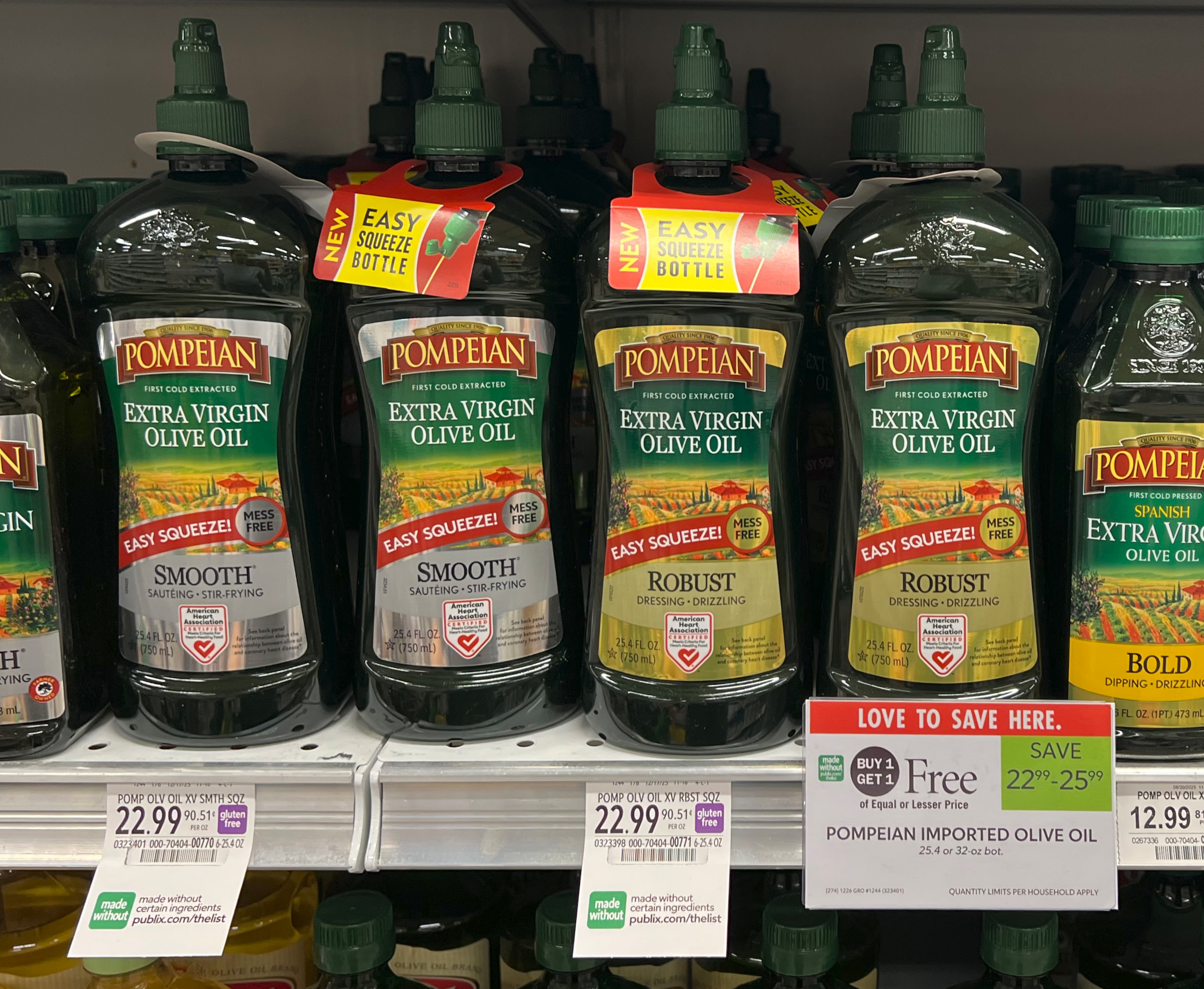 Need to restock your olive oil supply? You are in luck as we have a nice deal on Pompeian Olive Oil this week at Publix. Try the new squeeze bottle and save with the BOGO and cash back combo.