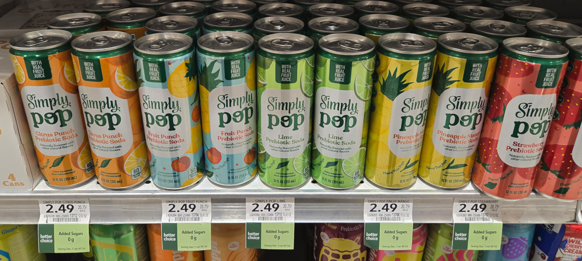 Simply Pop Prebiotic Soda, 12 oz can, $2.49