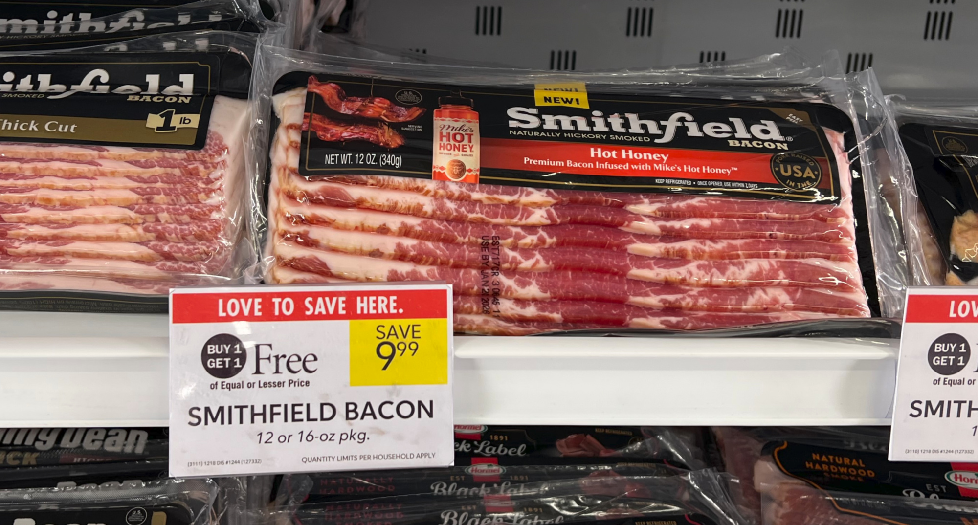 If your store is changed to the new ad today, you can pick up a nice deal on Smithfield Bacon. After BOGO sale and digital coupon, you can pick up the packs for as little as $4 each —that’s less than half price!