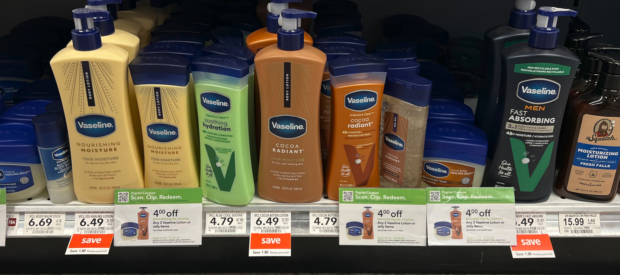 $4/2 Vaseline Products (Excludes Trial & Travel Sizes & 1.75oz Petroleum Jelly) (Publix Digital Coupon)