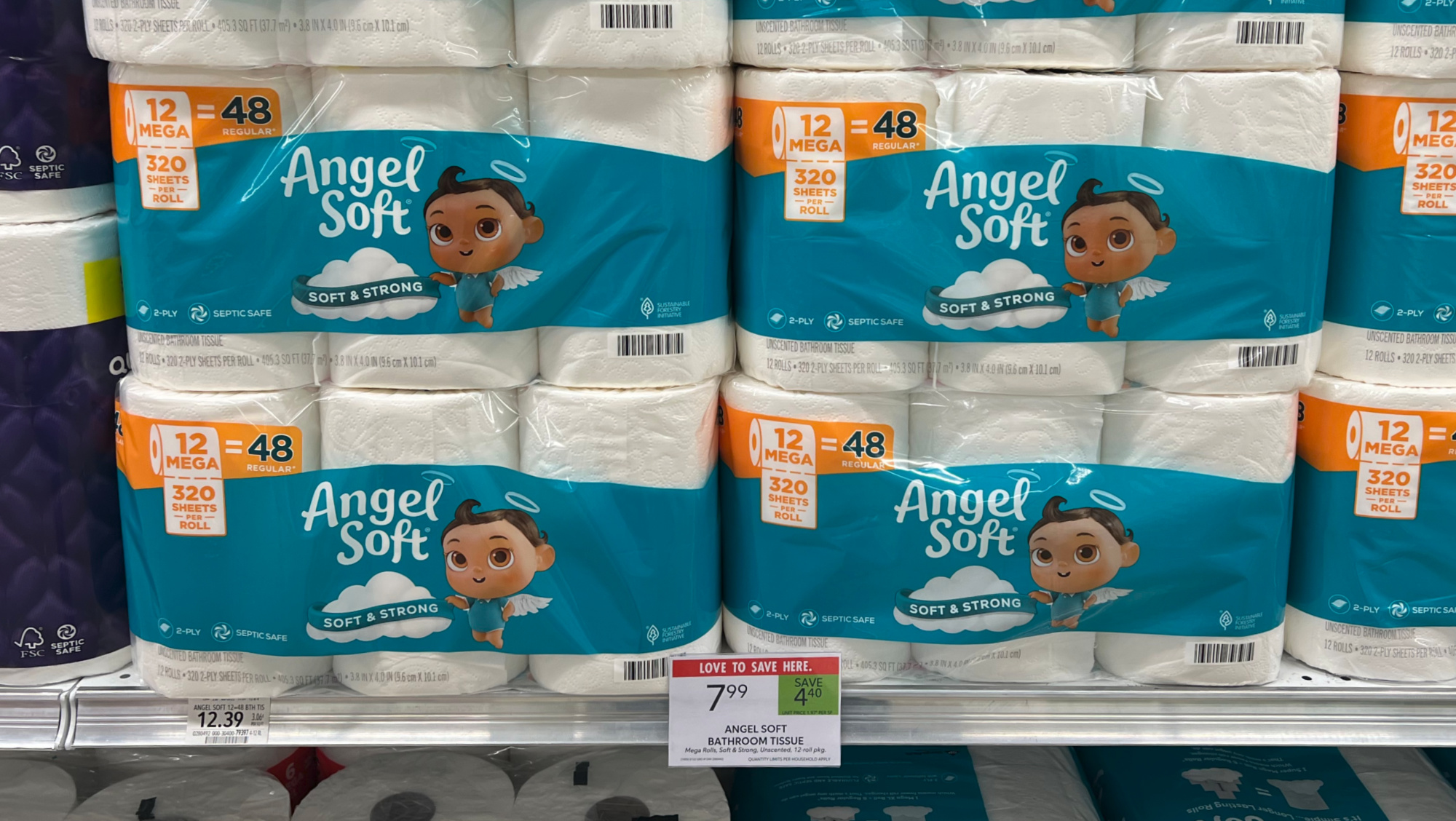 Angel Soft Bathroom Tissue, Mega Rolls, 12-Roll, or Super Mega Rolls, 8-Roll, $7.99 (reg $12.39)