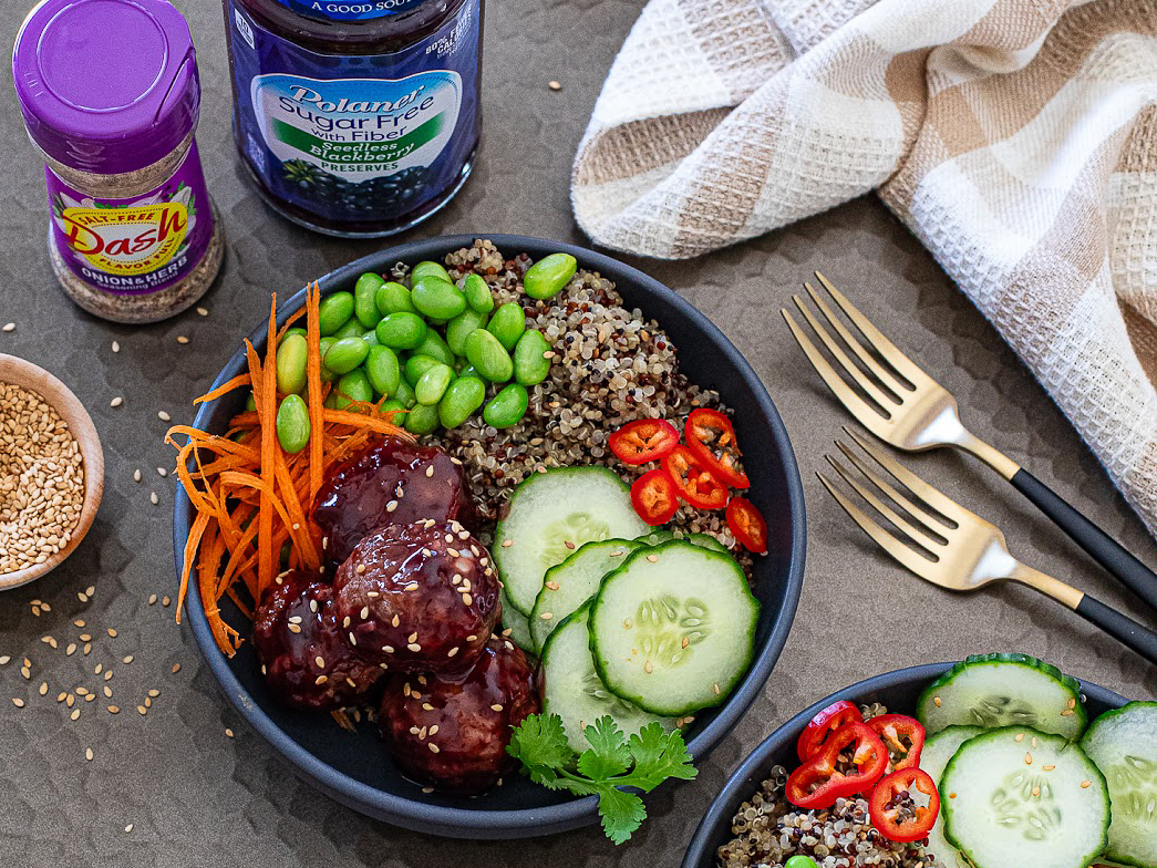 For a protein-packed meal that feels indulgent but fits your goals, look no further than these Blackberry Chipotle BBQ Turkey Meatball Bowls. This recipe leans on the bold flavors of Dash and the natural sweetness of Polaner to create a delicious, wholesome meal that the whole family will love.