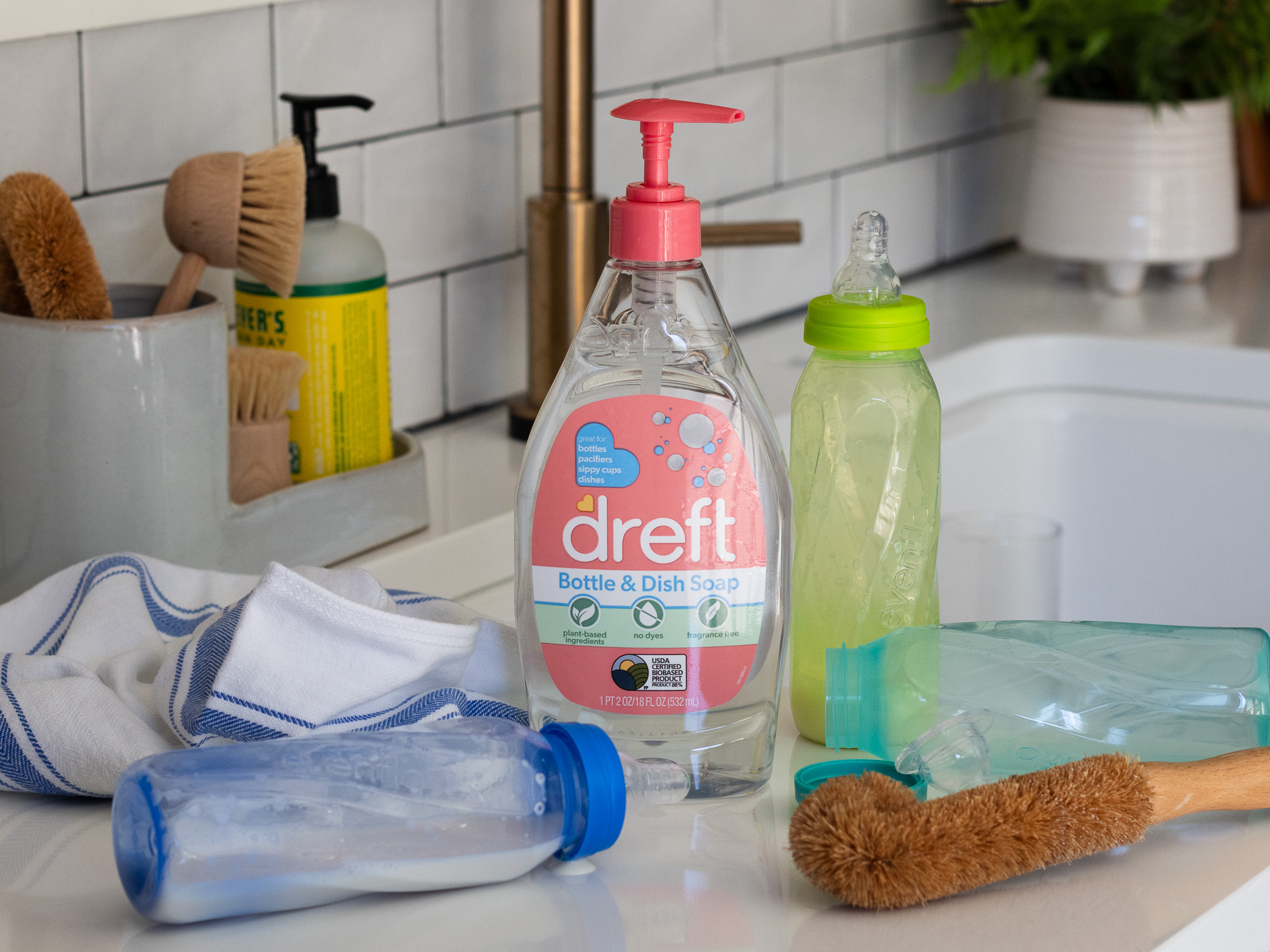 Dreft Bottle & Dish Soap is specially formulated to gently clean bottles, sippy cups, pacifiers and dishes! This formula is made from Plant-Based ingredients and is a USDA Certified Biobased Product! The Dreft Bottle & Dish Soap is a dermatologist tested and fragrance & dye free formula that cuts through milk film on bottles and breast pump components.