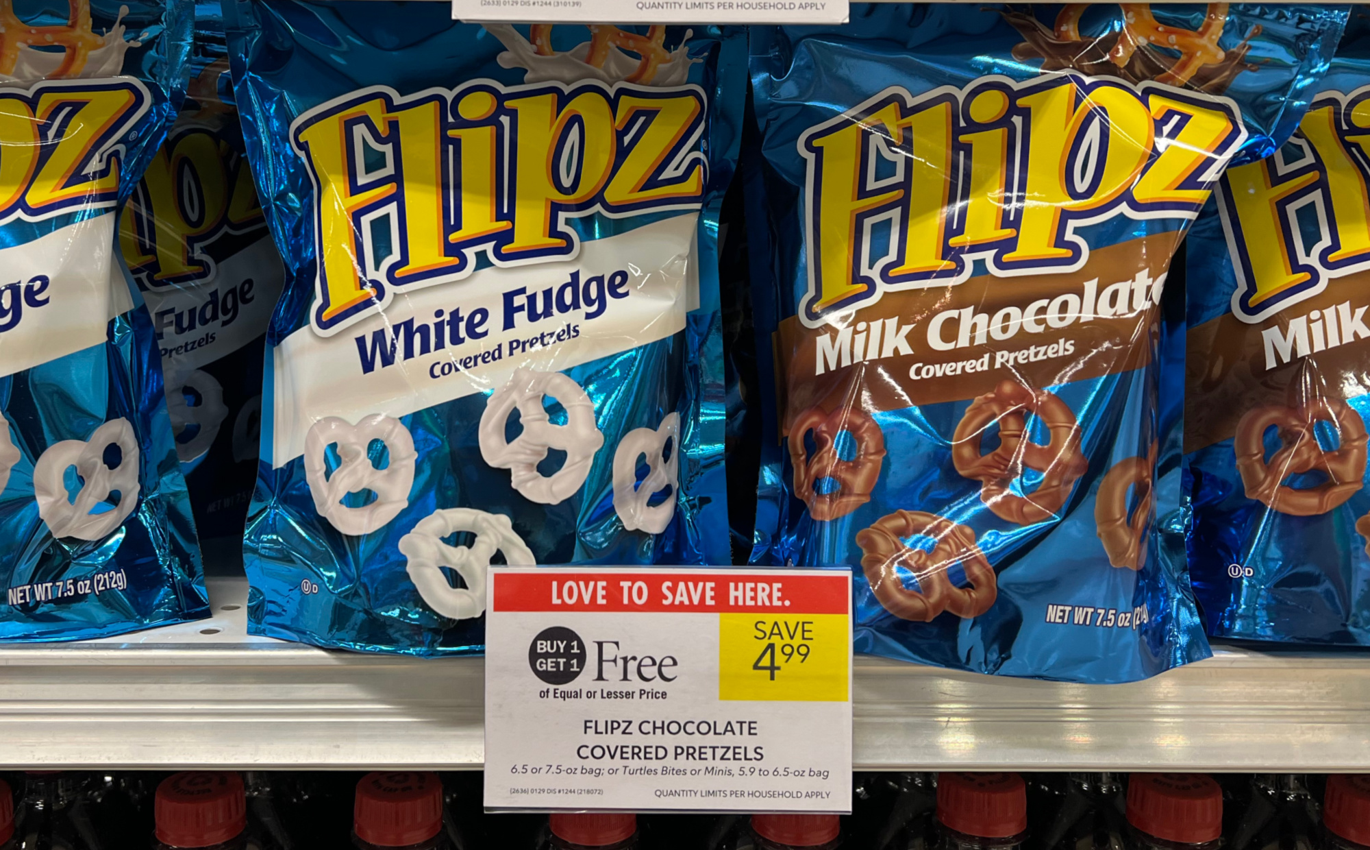 Flipz Chocolate Covered Pretzels, 6.5 or 7.5 oz bag, BOGO $4.99
