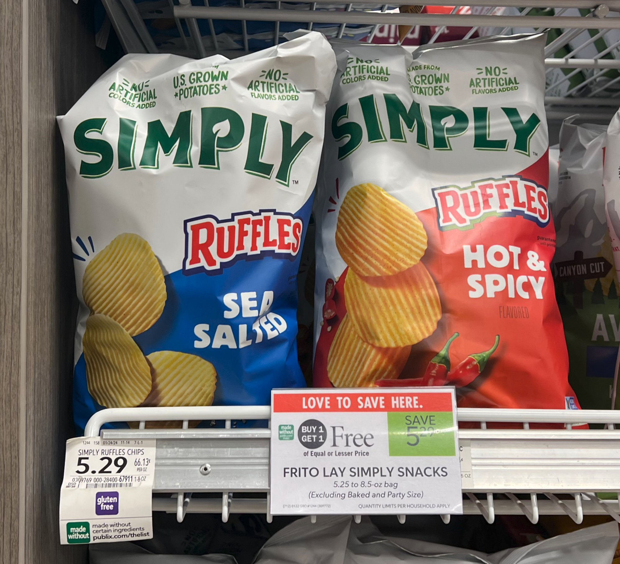 –$0.75/1 Simply Lays, Doritos, Cheetos, or Ruffles, 5.5 or larger (Ibotta Deposit) – Limit 5