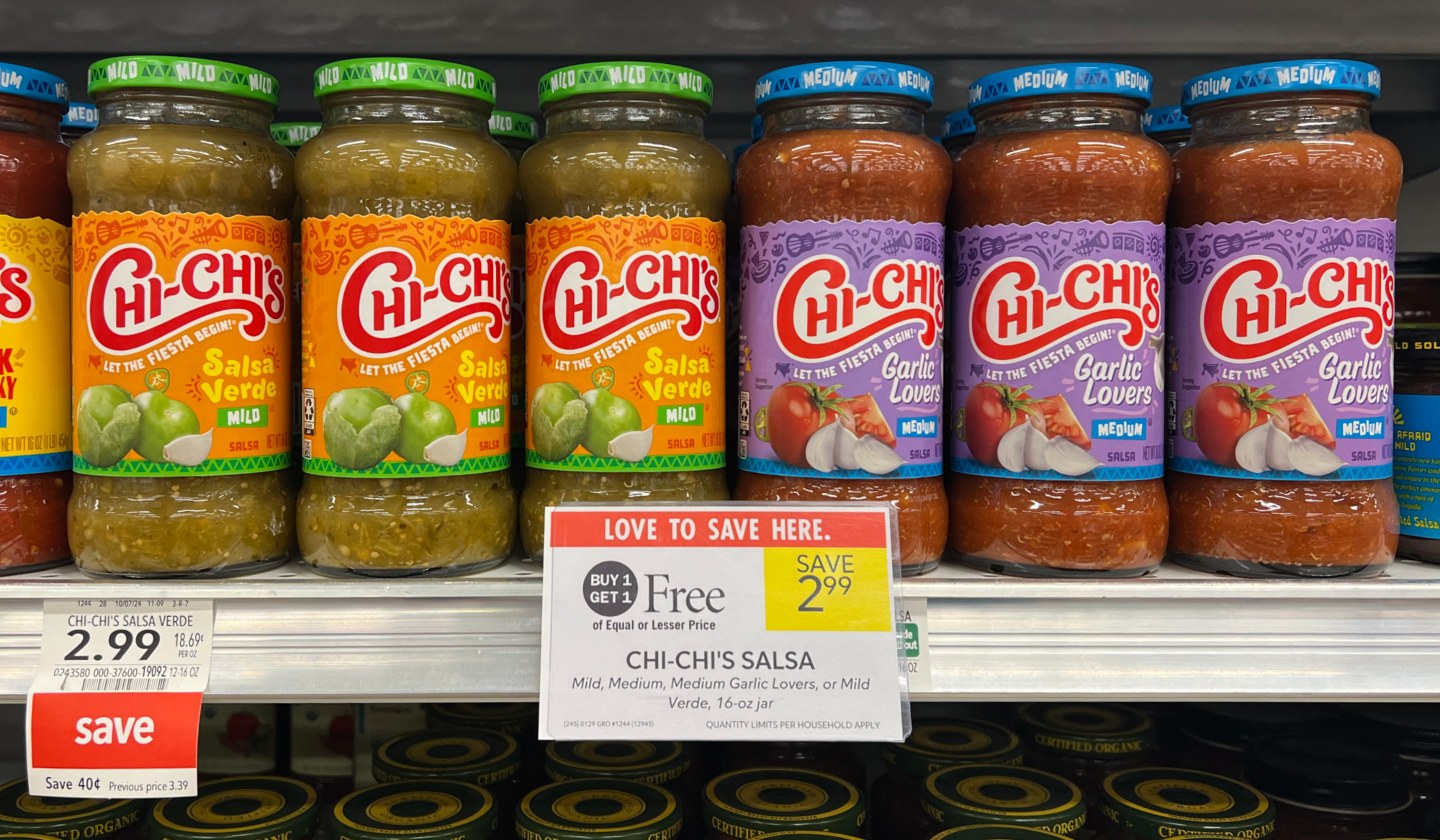 Chi-Chi’s Salsa, Mild, Medium, Medium Garlic Lover’s, or Mild Verde, 16 oz, BOGO $2.99