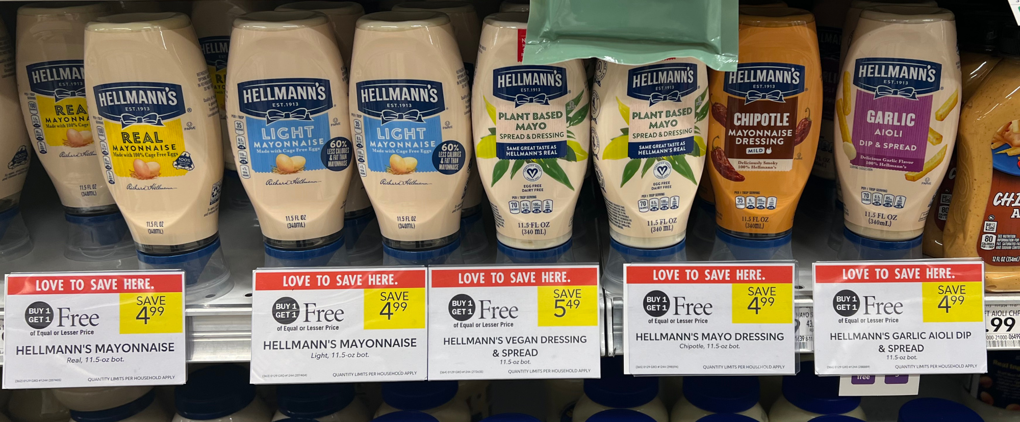 Hellmann’s Mayonnaise, or Dressing, Dip & Spread, or Dressing & Spread, 11.5 oz bot, BOGO $4.99 – $5.49